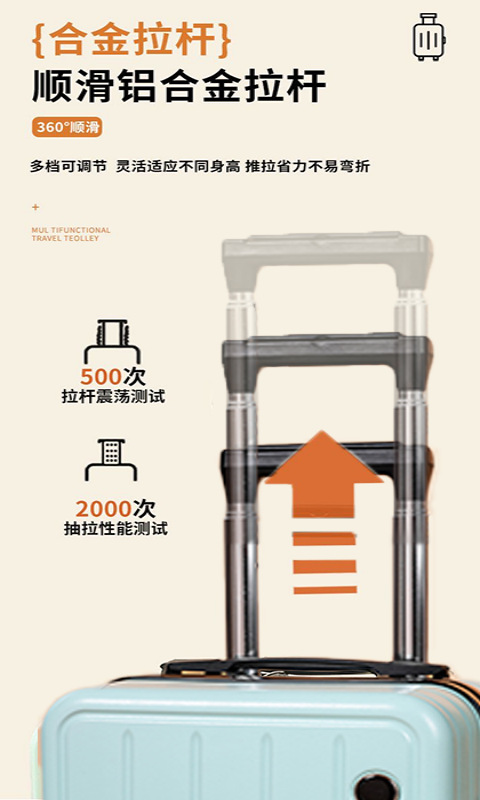 14inch 2단 당김 막대 + 컵 홀더 + 고급 안감