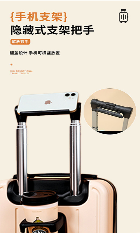 14inch 3단 당김 막대 + 컵 홀더 + 휴대폰 홀더 + 고급 안감
