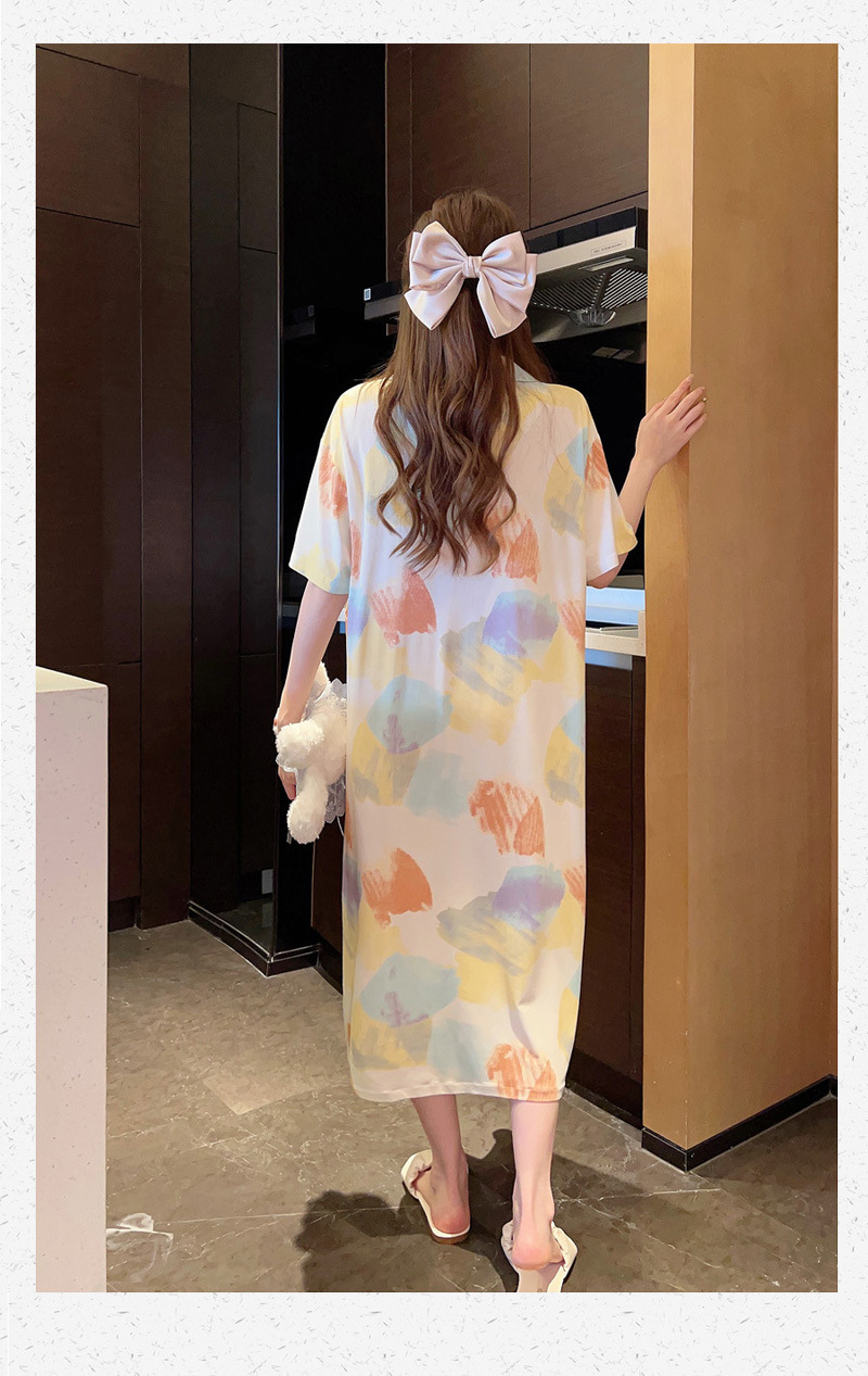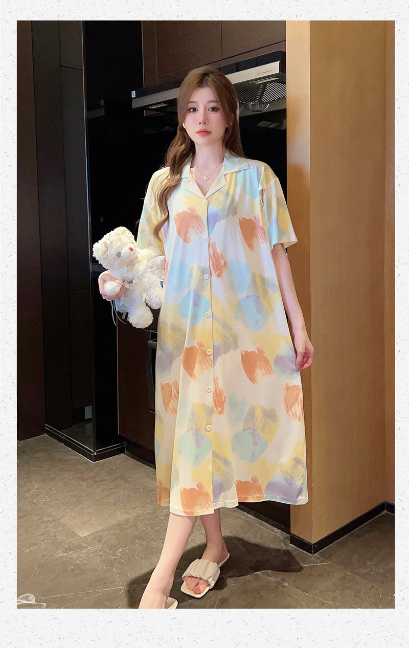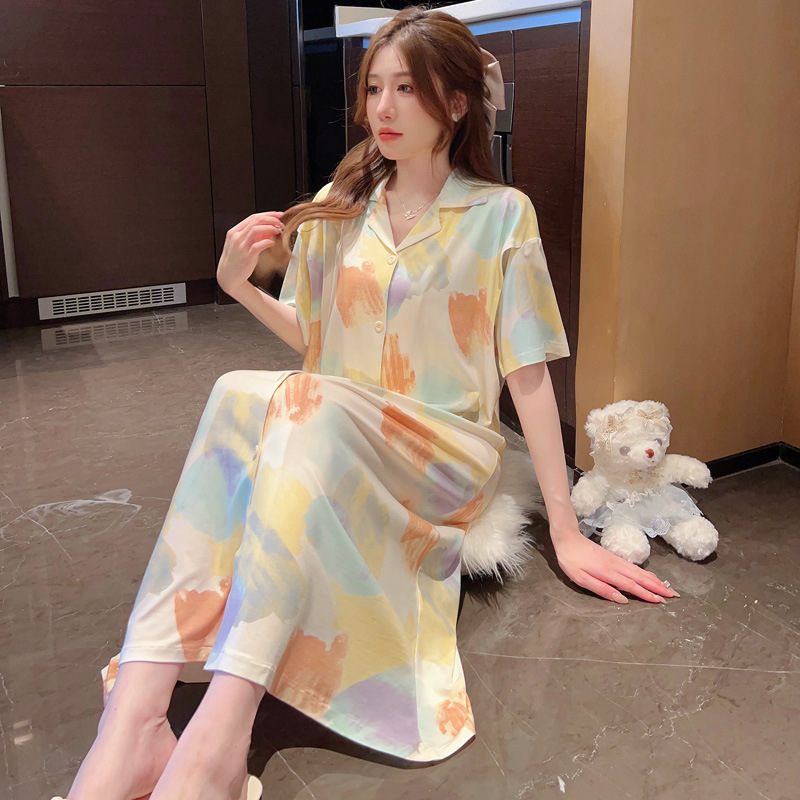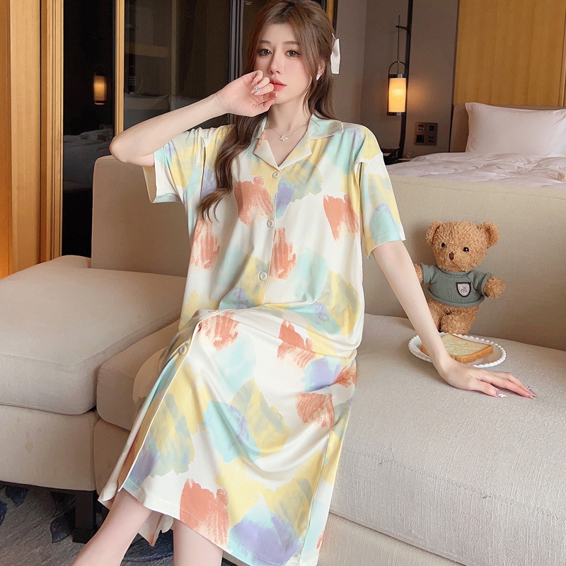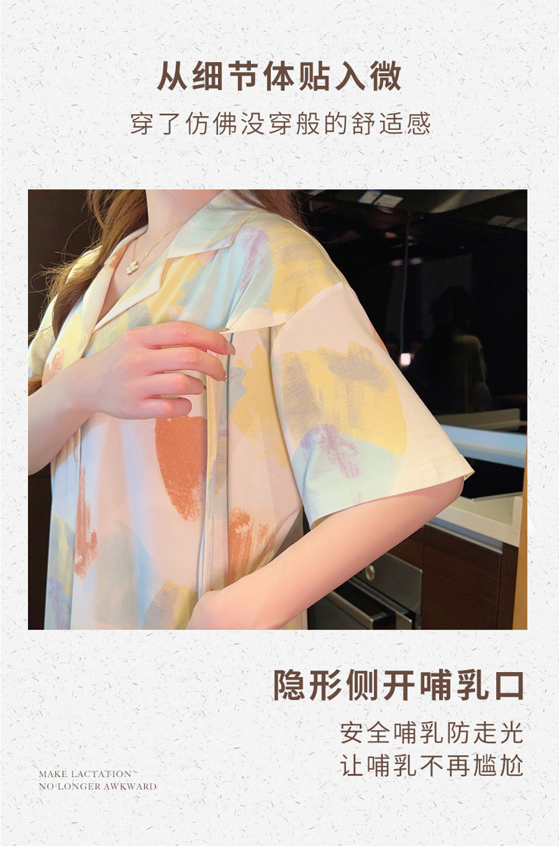 모달 수유 잠옷 여름 얇은 반팔 임산부 잠옷 여름 산후 수유 스커트 여성용