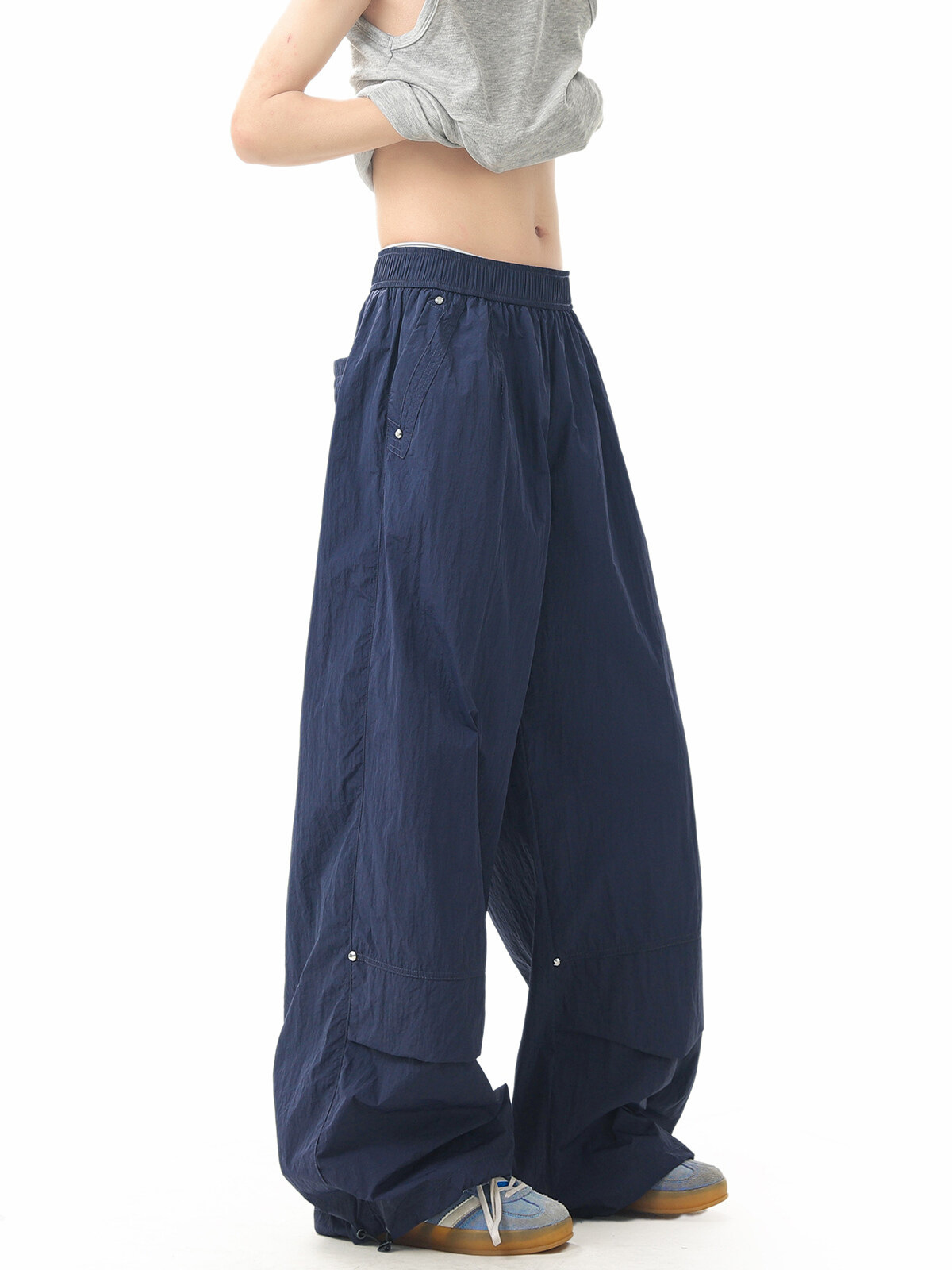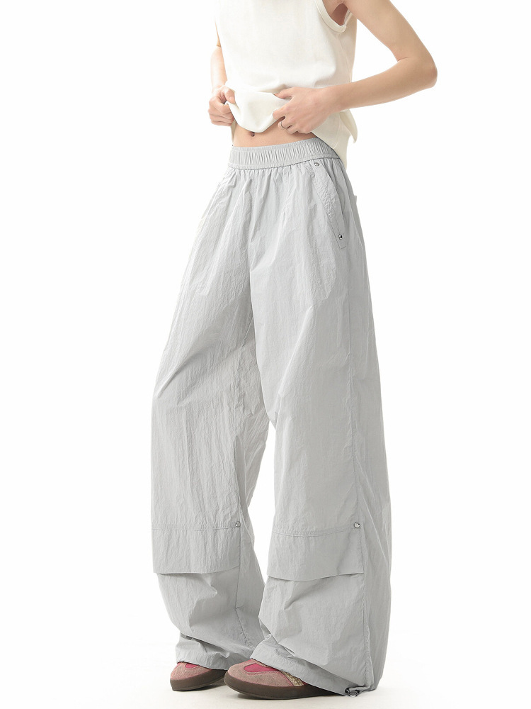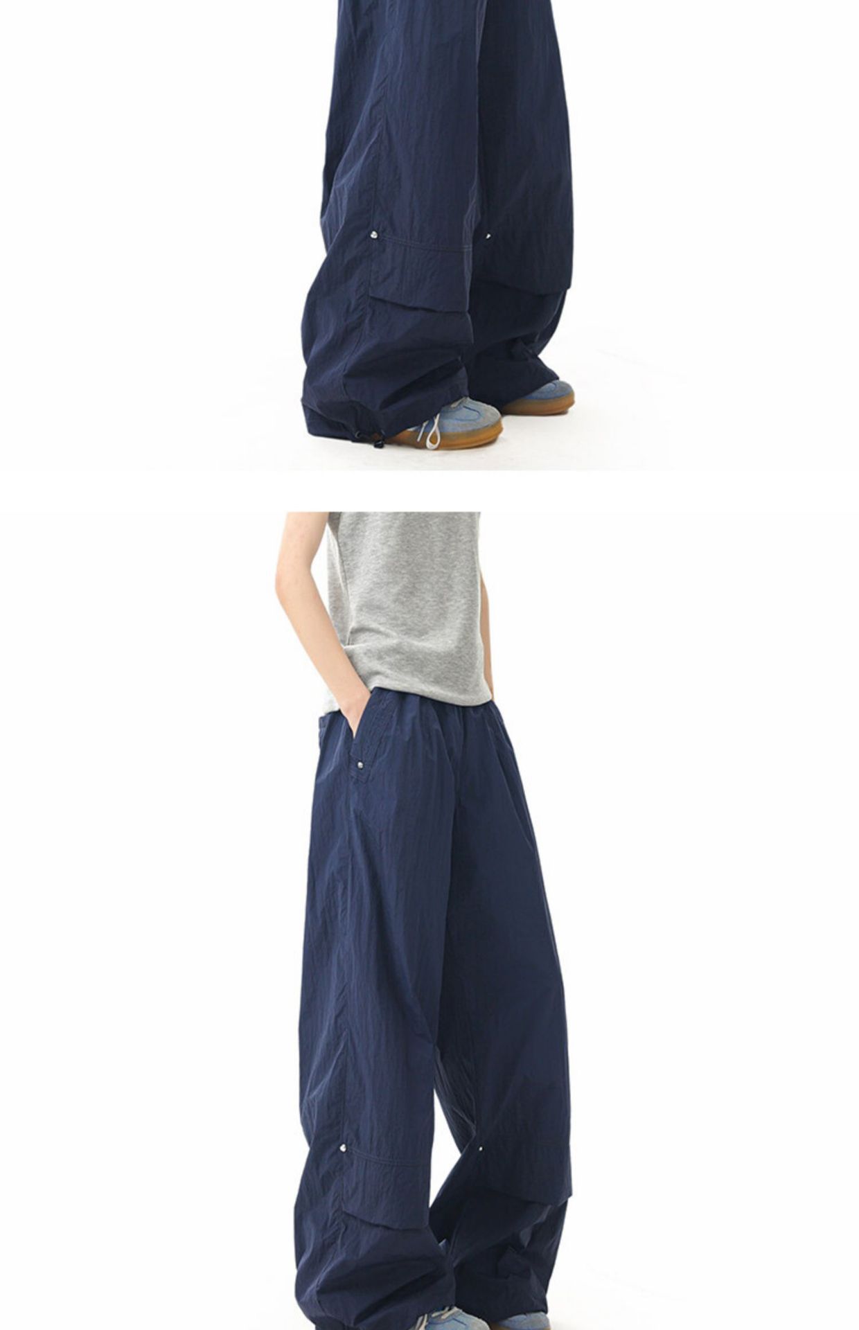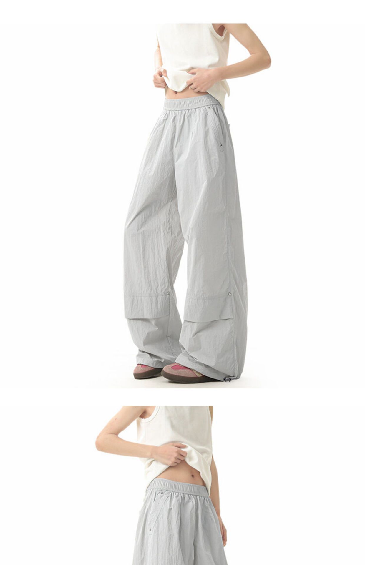 아메리칸 스타일 속건성 작업복 캐주얼 바지 남성 여름 얇은 트렌디 브랜드 드로스트링 레깅스 스포츠 루즈 와이드 레그 파라트리퍼스 바지