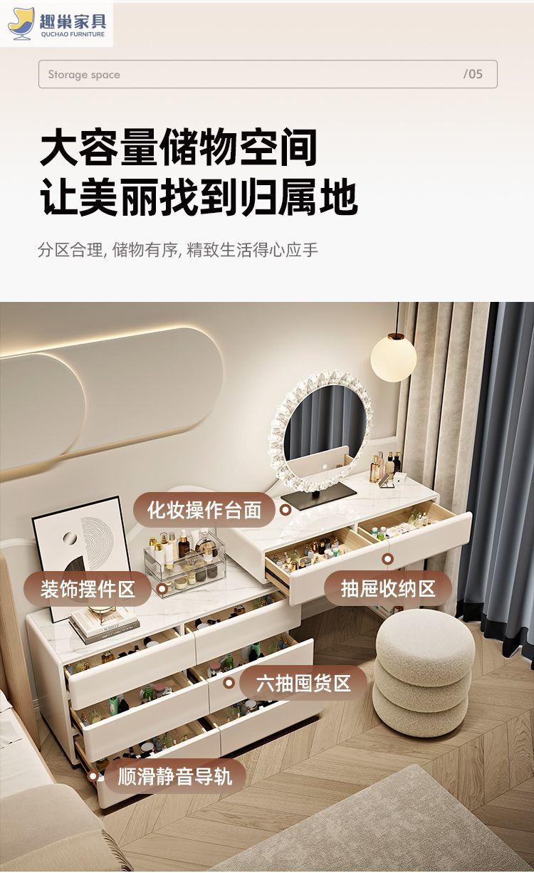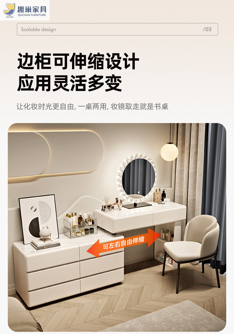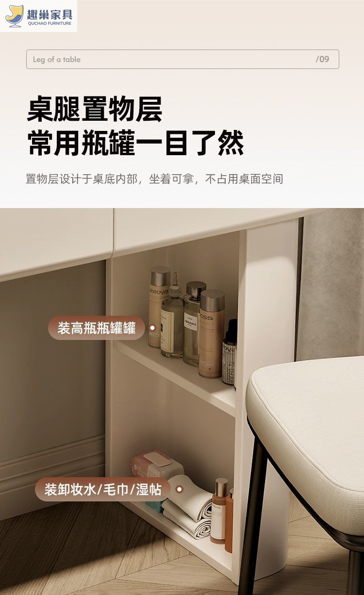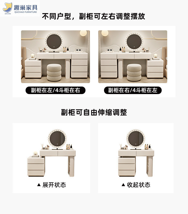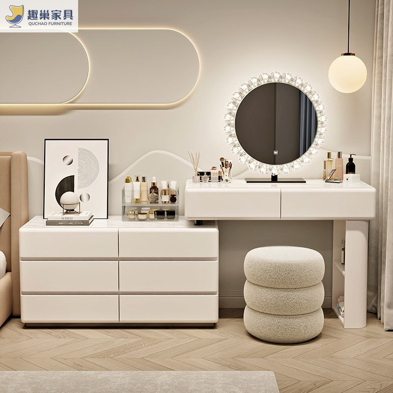 프렌치 스타일 크림풍 화장대, 가정용 수납장과 통합형 접이식 화장대, 임대주택용 럭셔리 침실 화장대