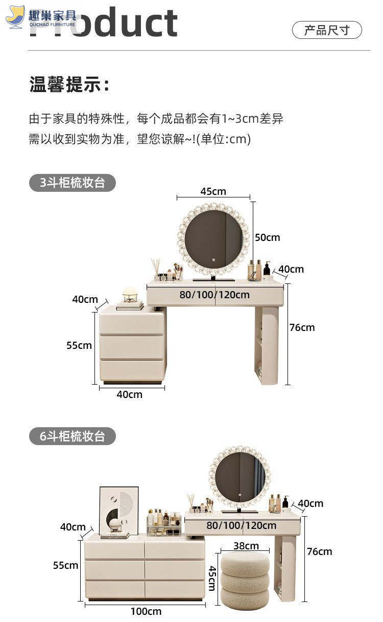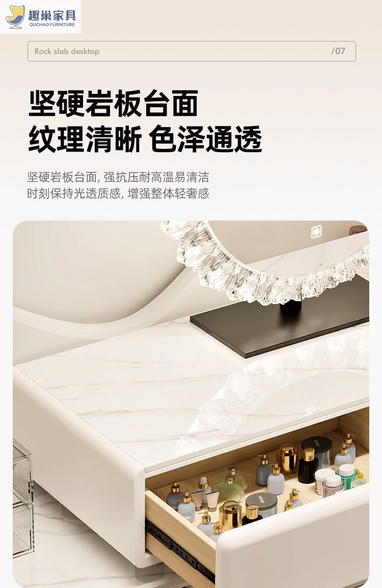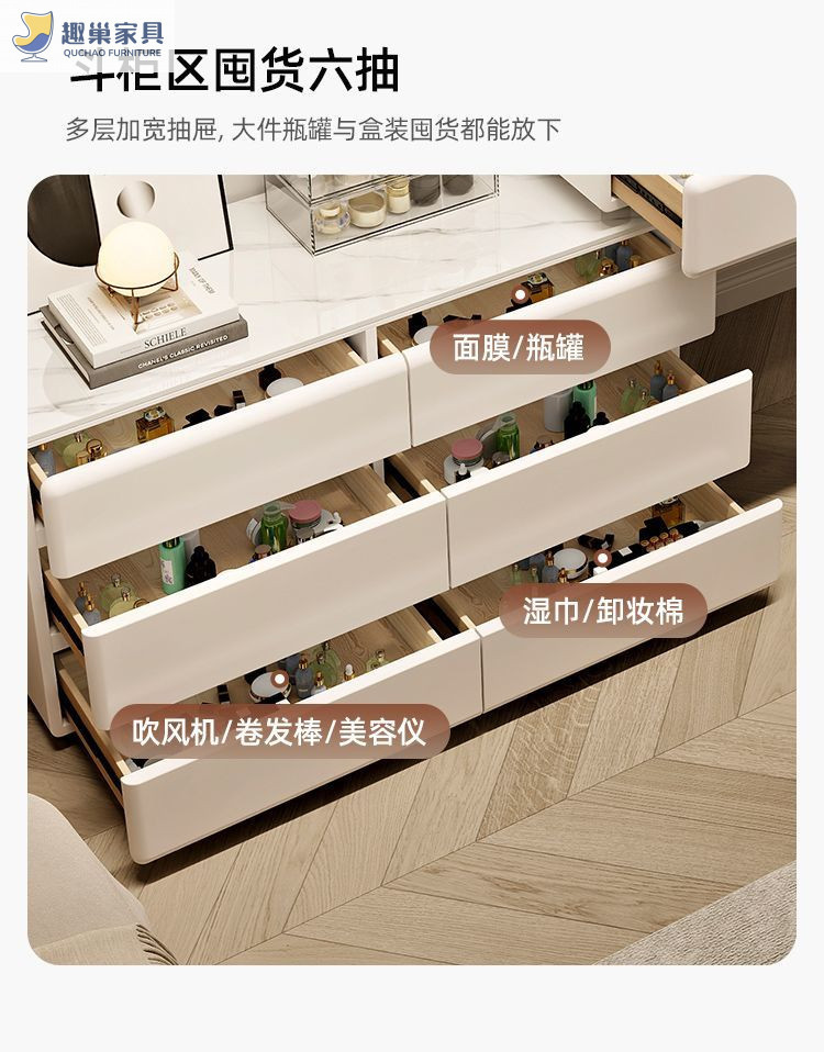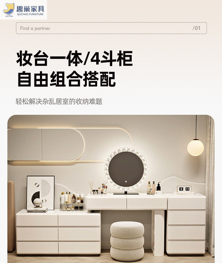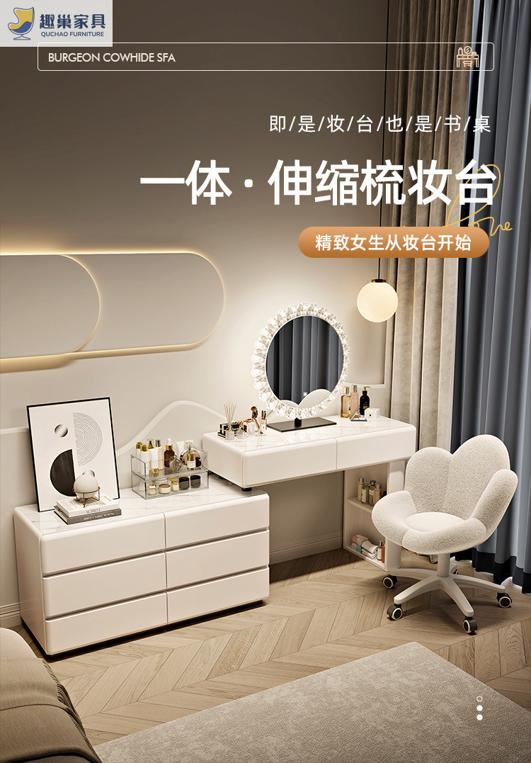 프렌치 스타일 크림풍 화장대, 가정용 수납장과 통합형 접이식 화장대, 임대주택용 럭셔리 침실 화장대