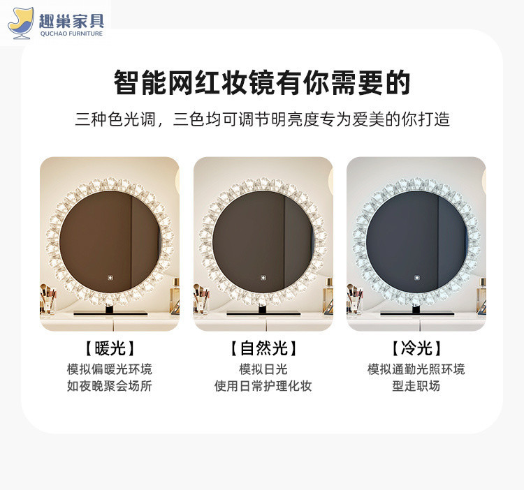 82cm 테이블 + LED 크리스탈 화장거울 + 원형 의자