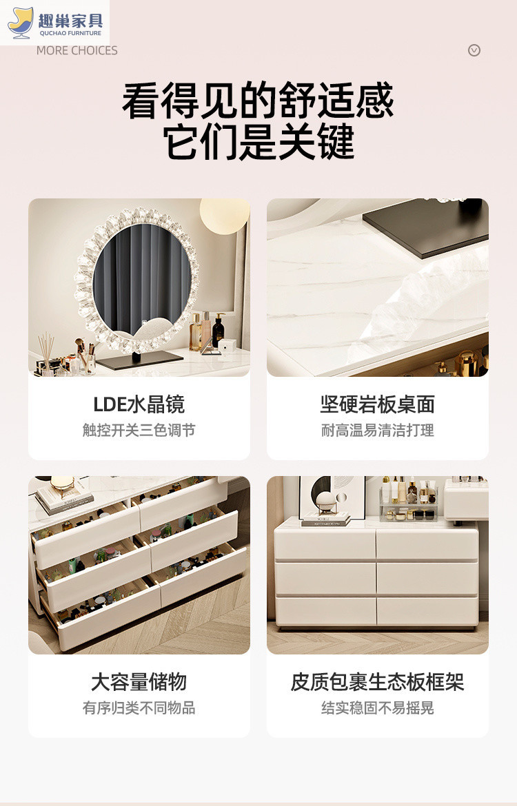 122cm 테이블 + LED 크리스탈 화장거울 + 원형 의자 + 서랍장 4개