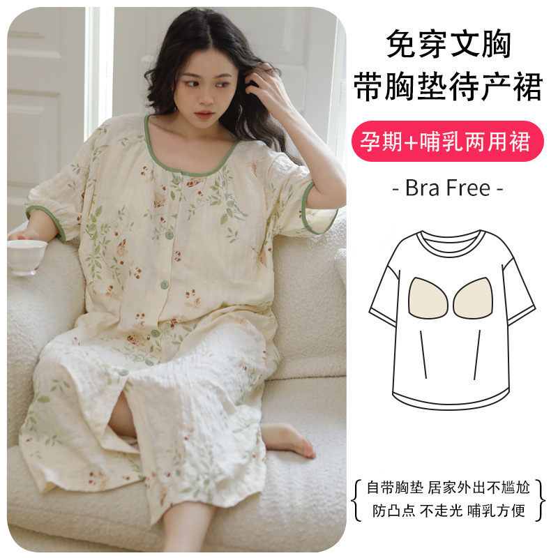 임산부 임산부 스커트, 가슴 패드가 내장된 여름용 얇은 수유 잠옷, 산후 잠옷, 여성용 산후복 드레스