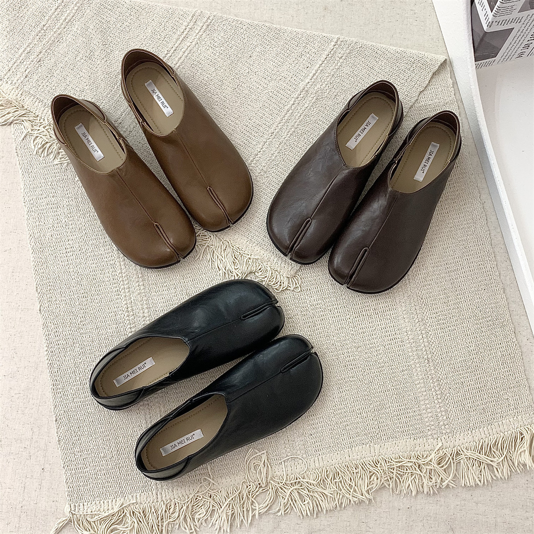 레트로 플랫 슈즈, 돼지발톱 슈즈, 여성용 2025 신상 사계절 여성화, 투웨어 말발굽 슈즈, 여성용 원레그 슈즈