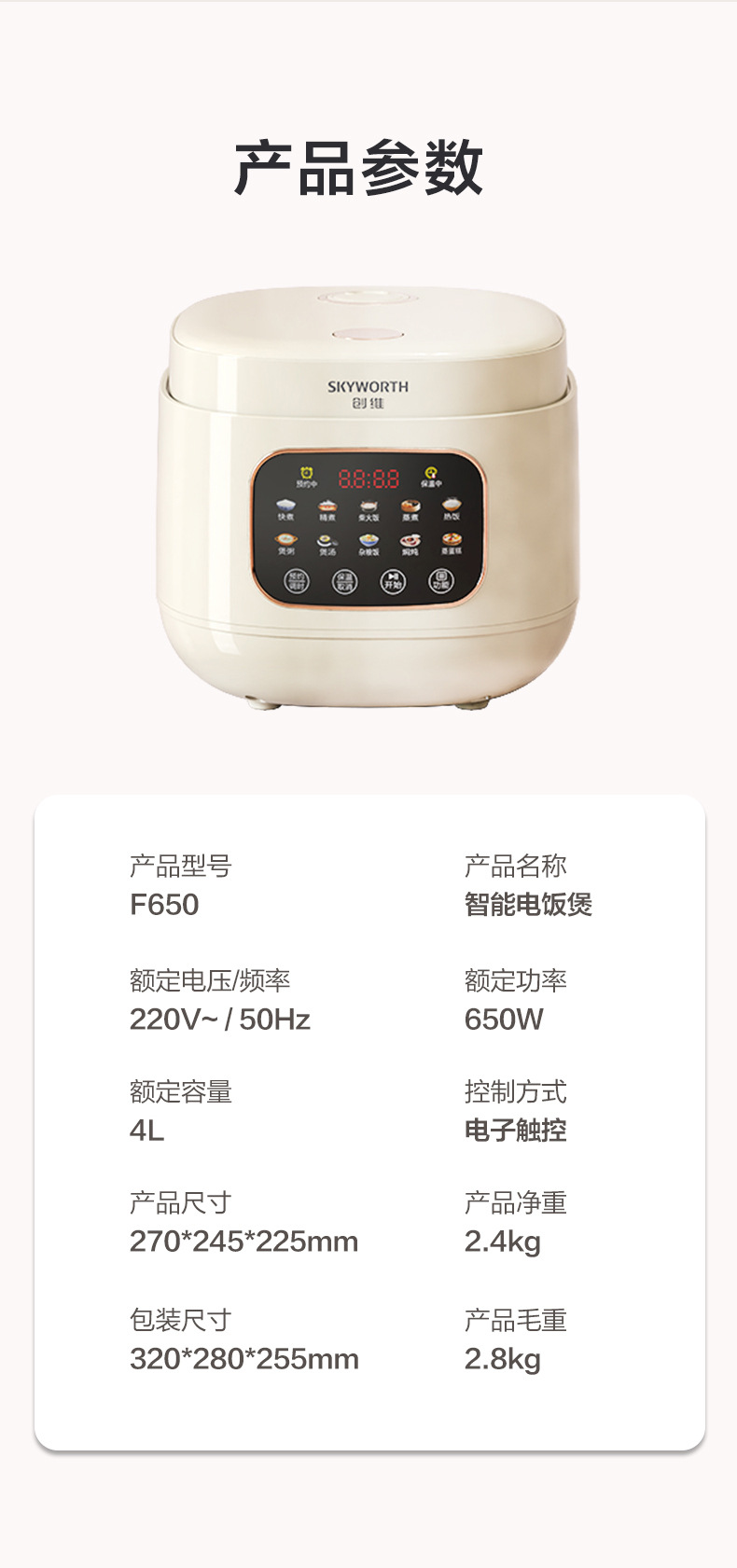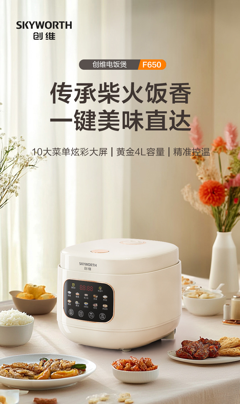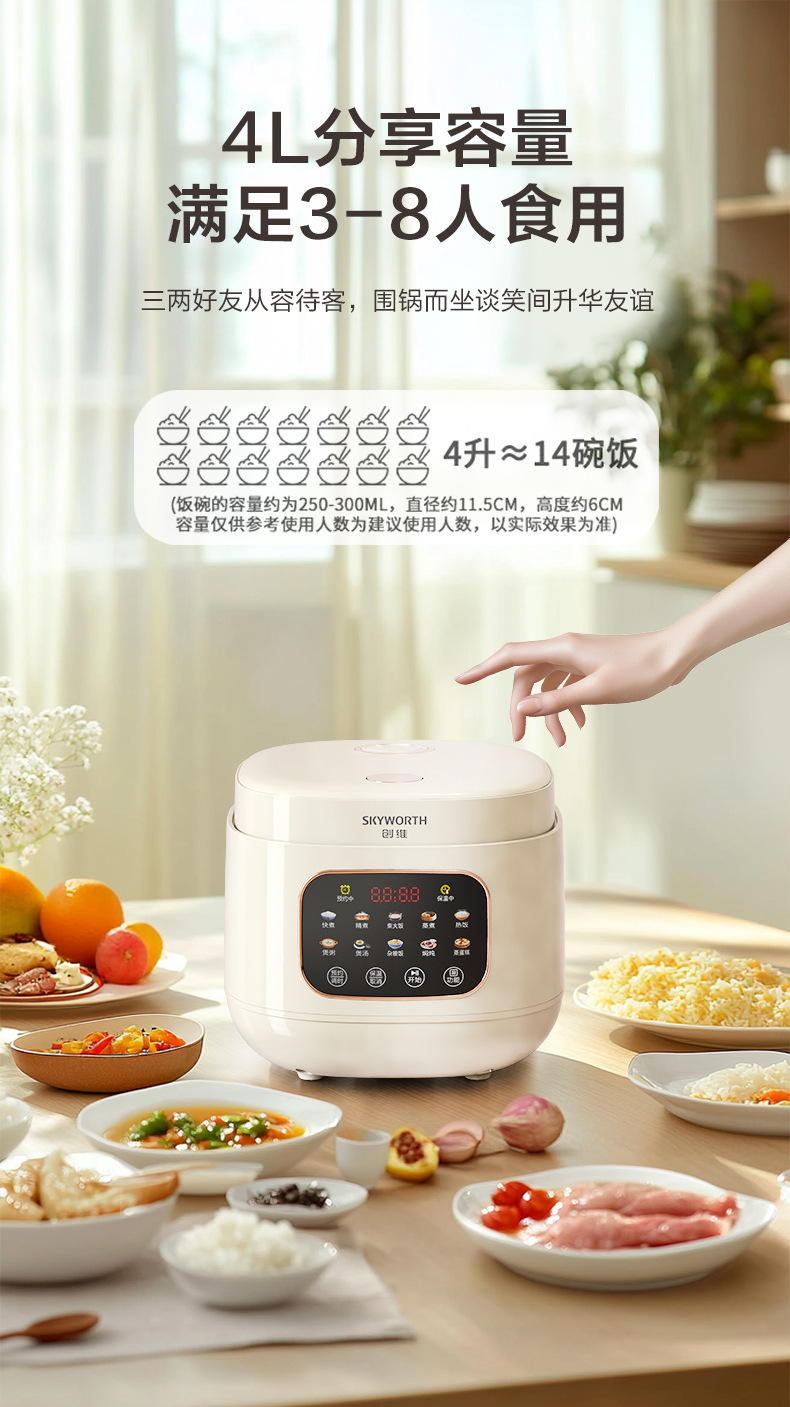 Skyworth 4L 스마트 밥솥 25분 빠른 밥솥 알루미늄 합금 붙지 않는 냄비 F650