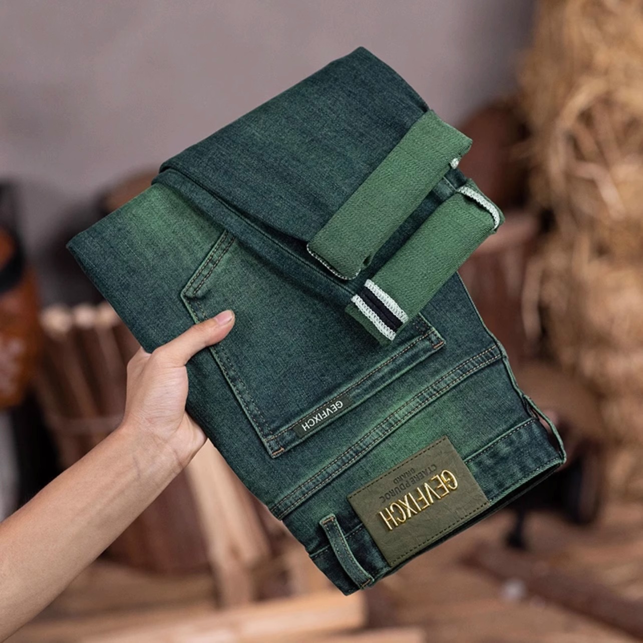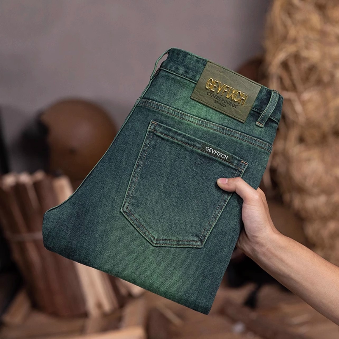 그린 워터 고스트 하이 엔드 남성용 신형 슬림 청바지 남성용 9부 바지 그린 트렌디 브랜드 패션 작은 다리 바지