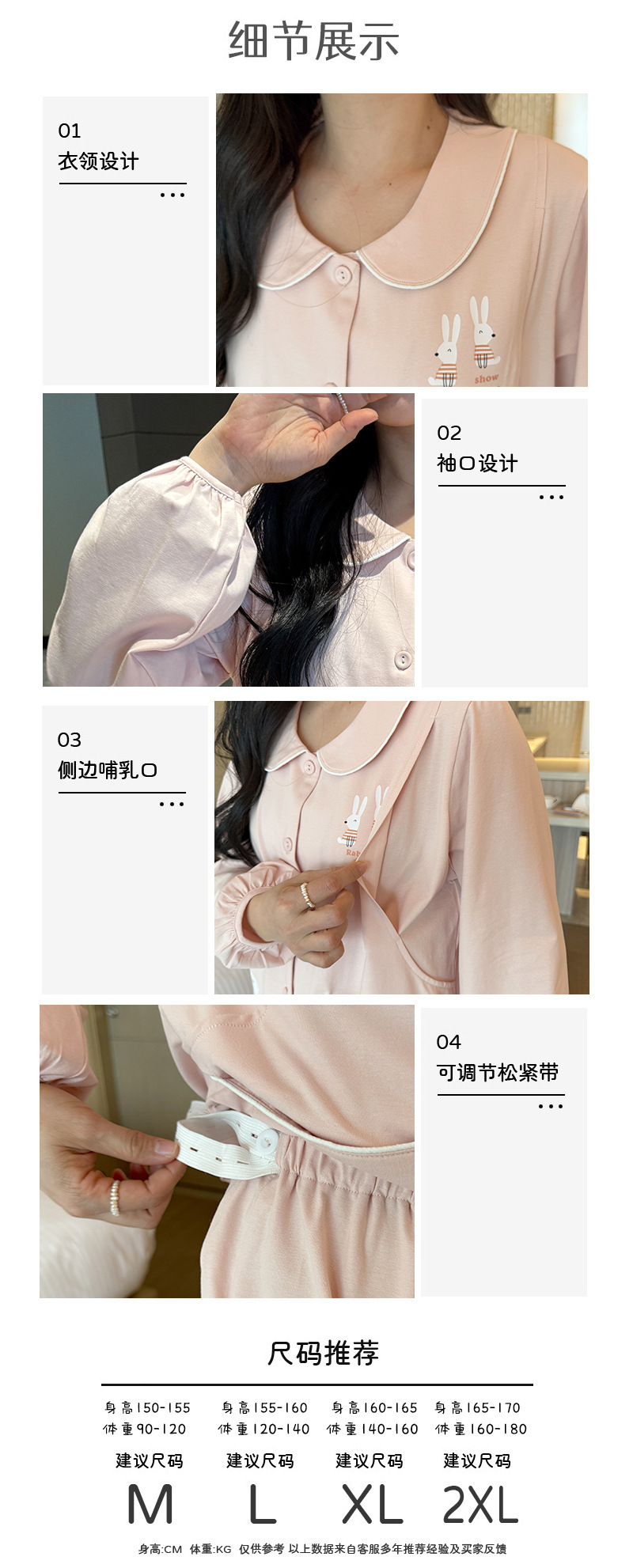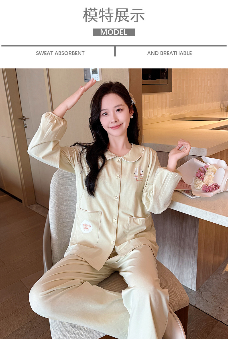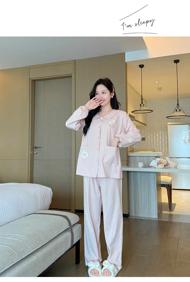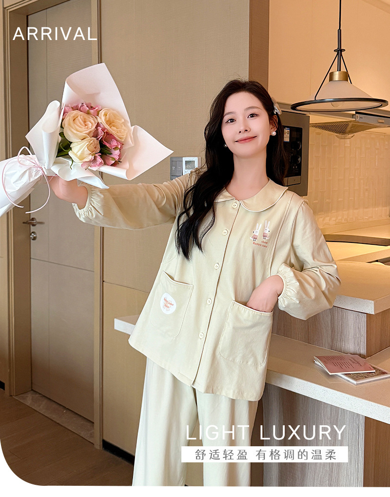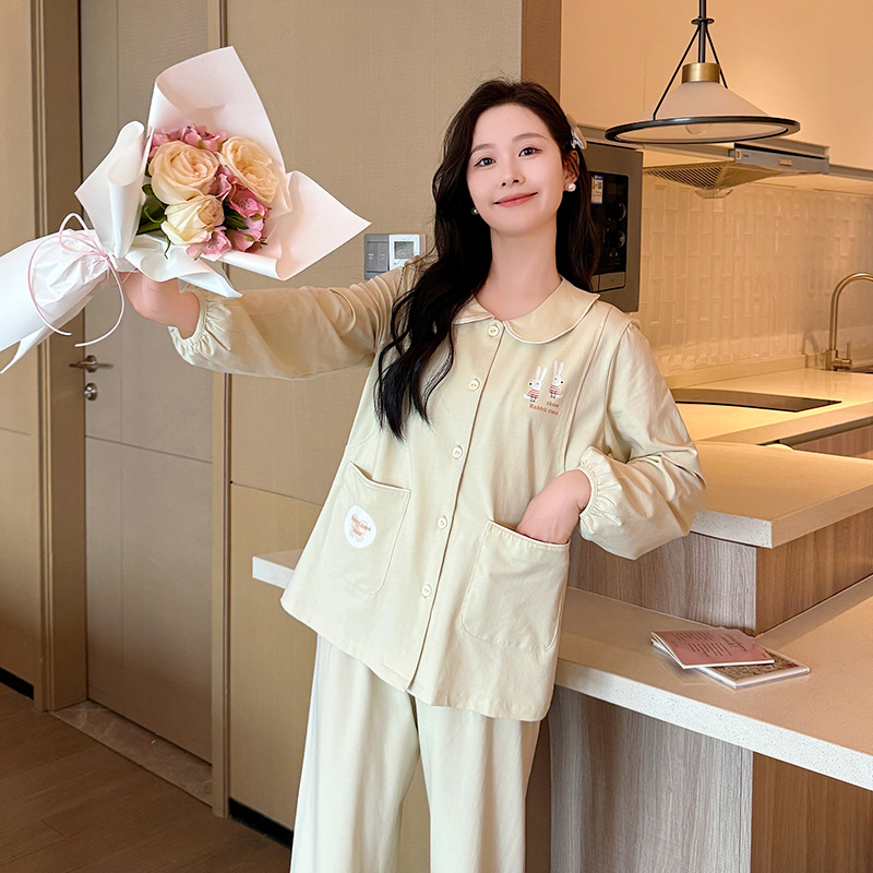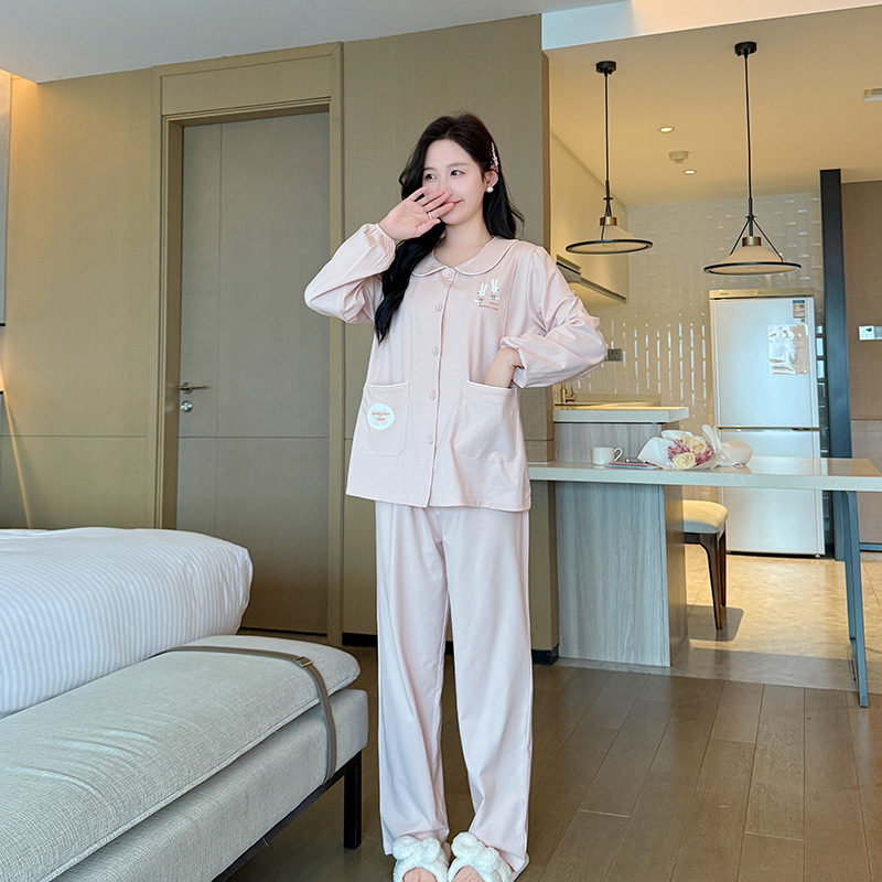 산후 의류 순면 산후 느슨한 모유 수유 의류 카디건 출산 임산부 모유 수유 잠옷 만화 간단한 스타일