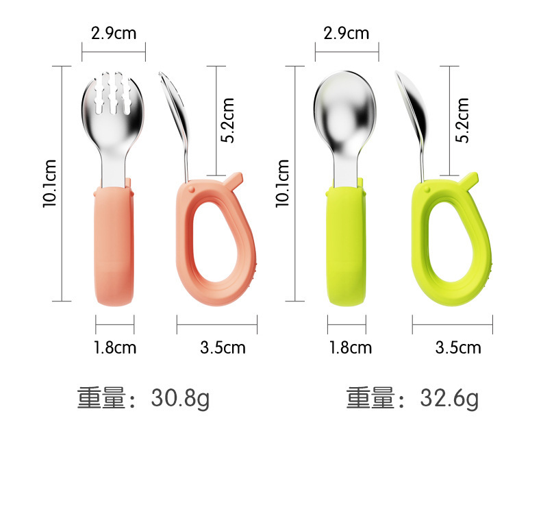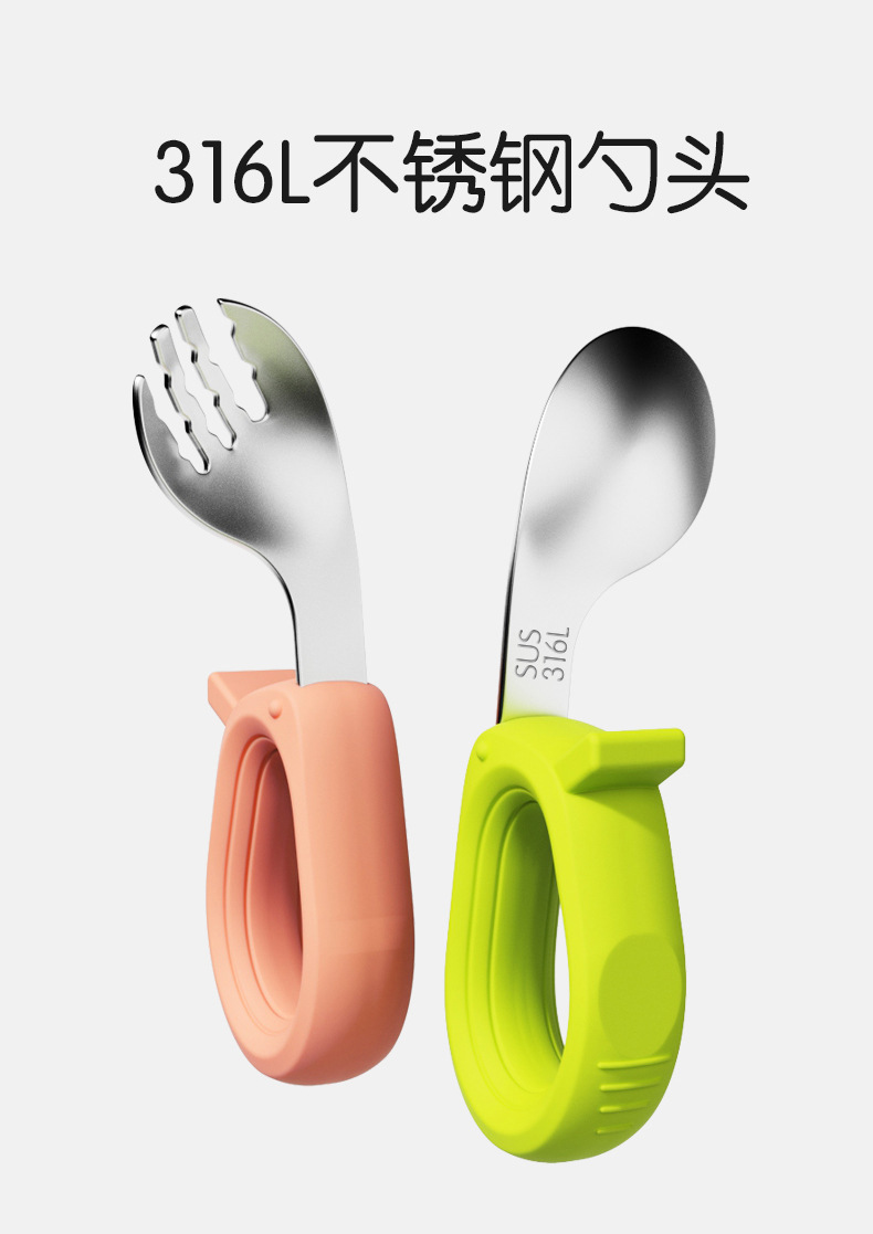 아기 스푼 세트 아기 짧은 손잡이 포크와 스푼 316 스테인레스 스틸 팔꿈치 훈련 어린이 식기 학습 식품 스푼 보충 식품