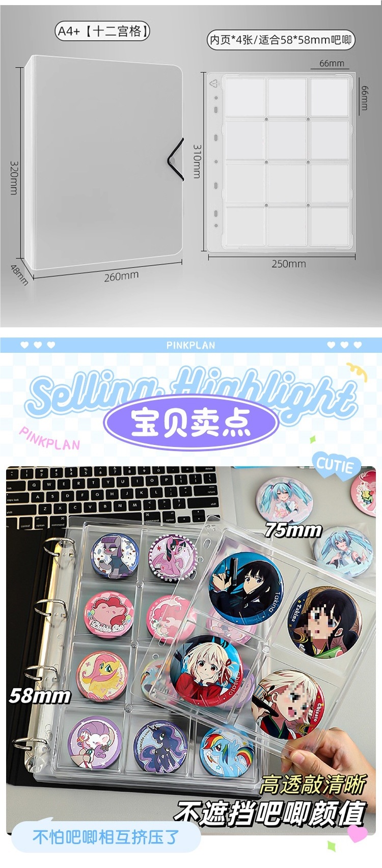 바지 수납북, 원형 배지 수집 카드북, 사각 밀 배지 수집북, 크리스탈 고가치