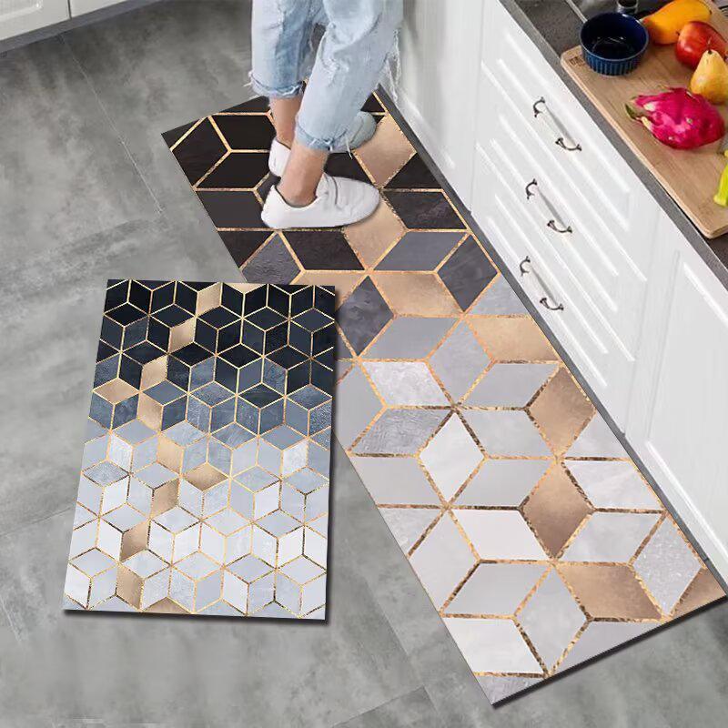 국경 간 간단한 북유럽 가정용 기하학적 격자 무늬 주방 바닥 매트 긴 스트립 오일 흡수 더러운 저항 매트 입장 문 카펫