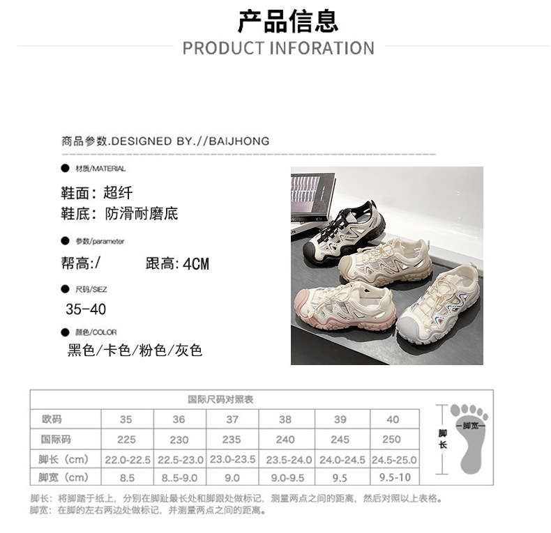 Bailu의 같은 스타일 메쉬 못생긴 신발 여성 신발 2025 봄 여름 새로운 야외 하이킹 신발 아빠 스포츠 신발 여성