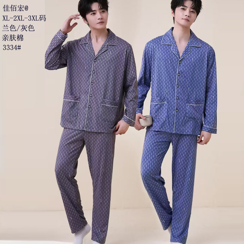 니트 코튼 스타일 피부 친화적인 코튼 2025 새로운 모조 코튼 긴팔 바지 홈웨어 카디건 슈트 남성 잠옷