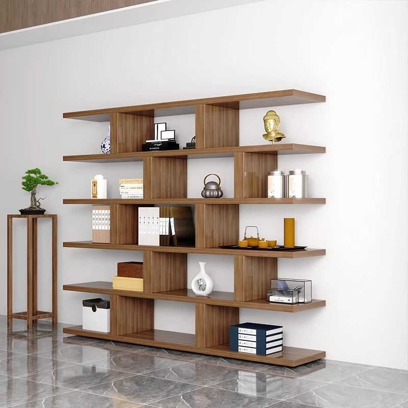 사무실 바닥에서 천장까지 이어지는 단단한 나무 두꺼운 책장, 창의적인 장식, 거실 다층 칸막이 책장, 벽에 붙은 통합 책장