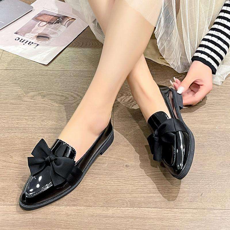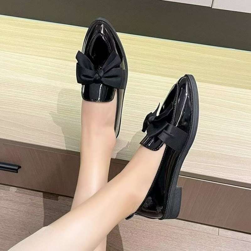 여성용 영국식 펌프스 로퍼, 로우힐 하이힐, 2025 신상 다용도 리본 JK 싱글 슈즈, 스몰 가죽 슈즈