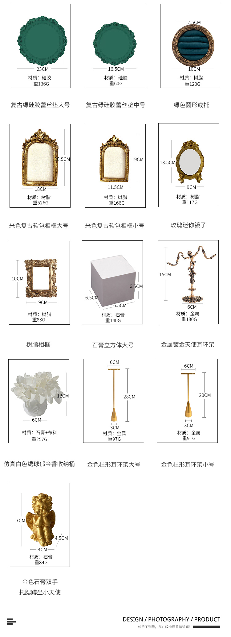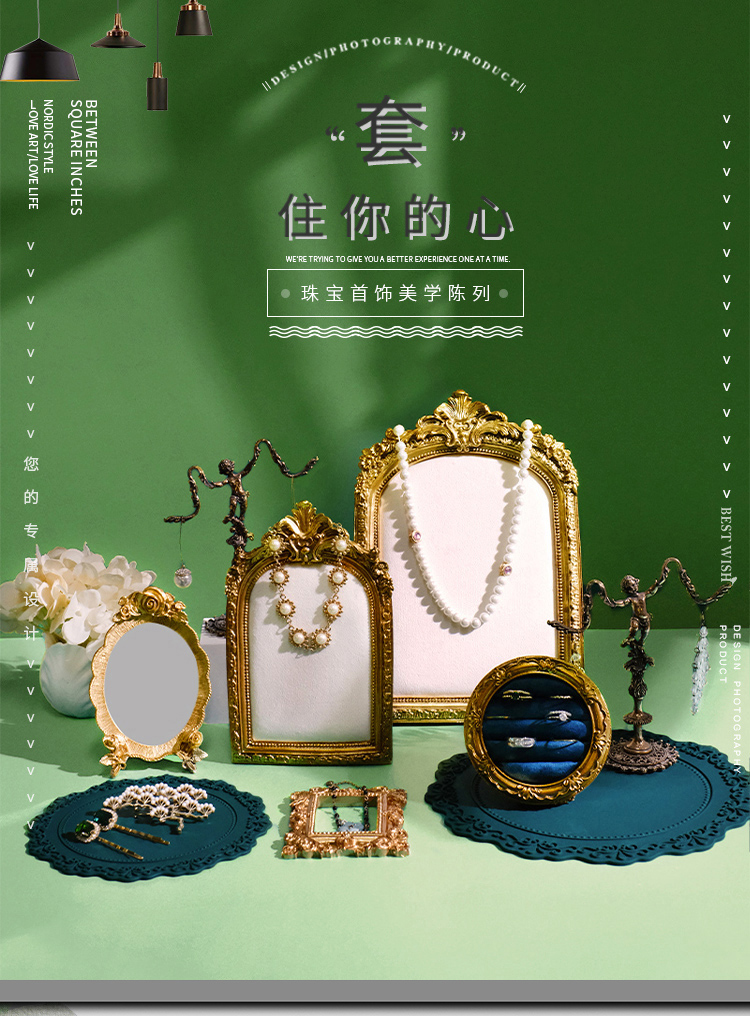 보석 디스플레이 스탠드 벨벳 사진 프레임 귀걸이 스탠드 반지 홀더 보석 디스플레이 촬영 복고풍 소품 및 장식품