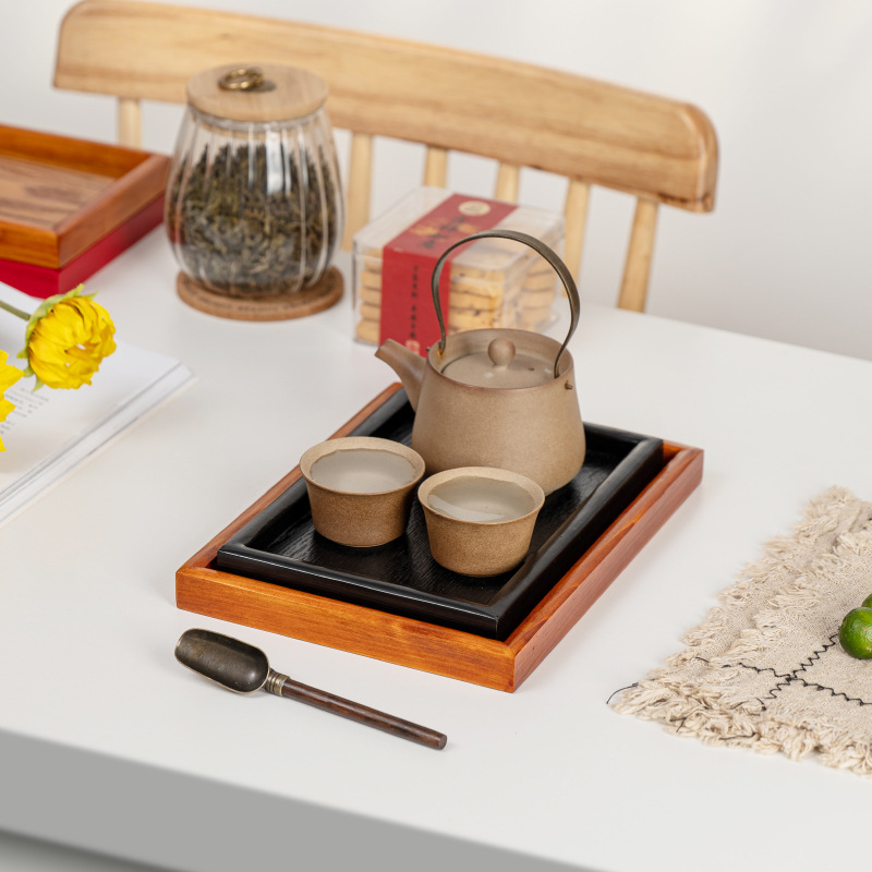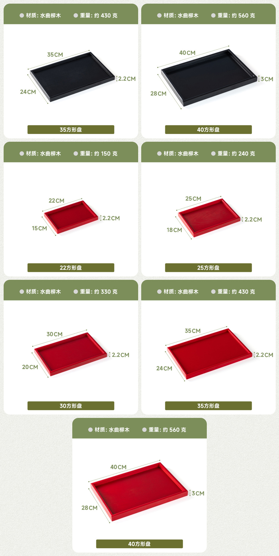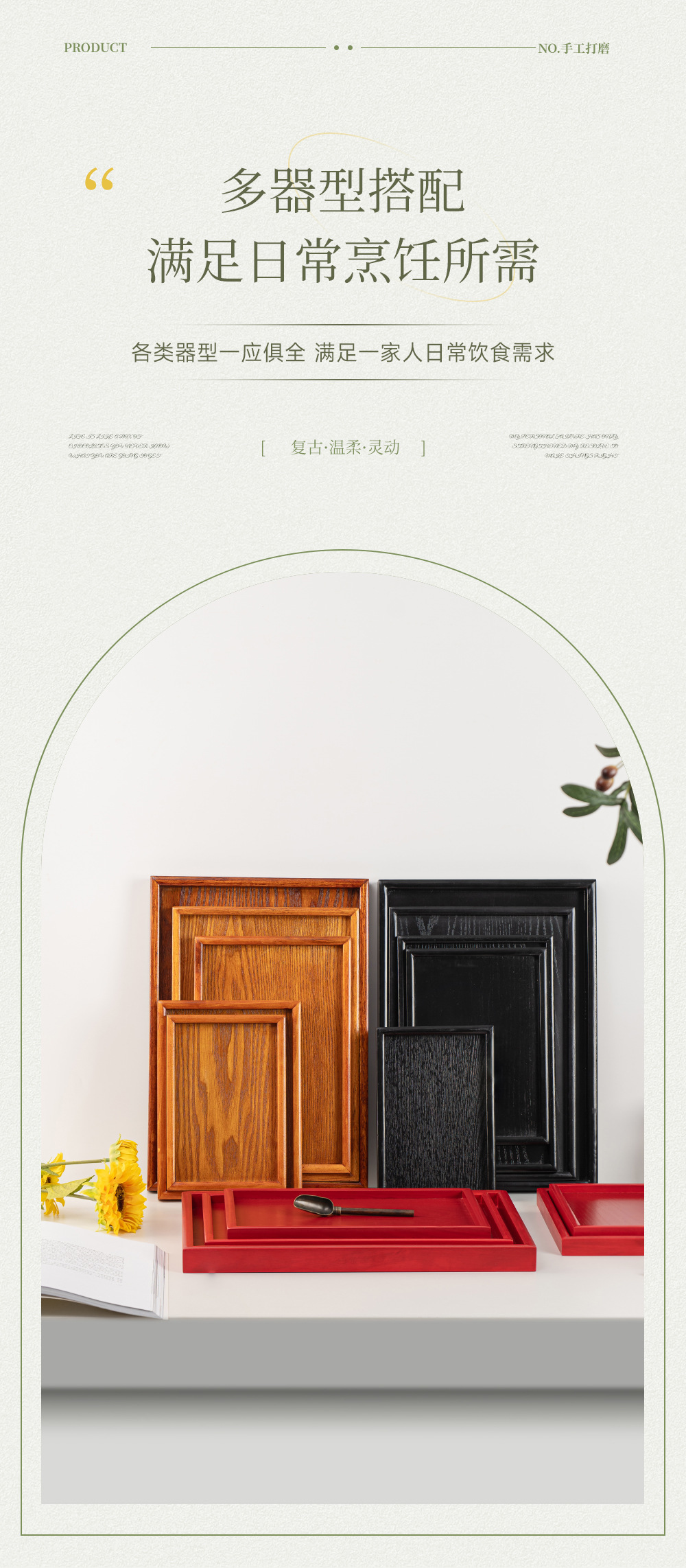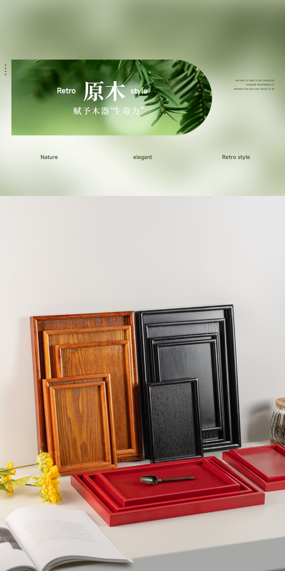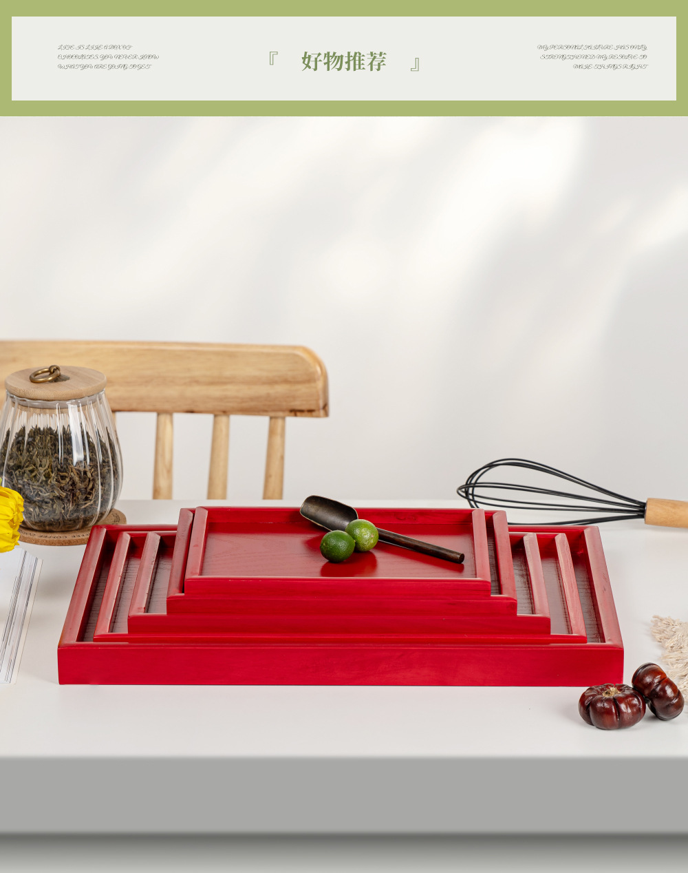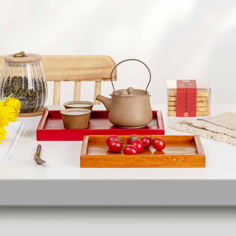 도매용 빨간색 중국식 나무 트레이, 직사각형 및 원형 차 트레이, 식기류, 빨간색 접시, 호텔, 결혼식, 나무제품