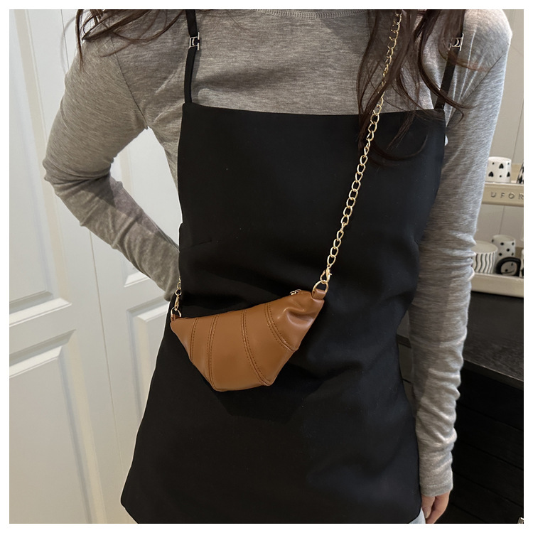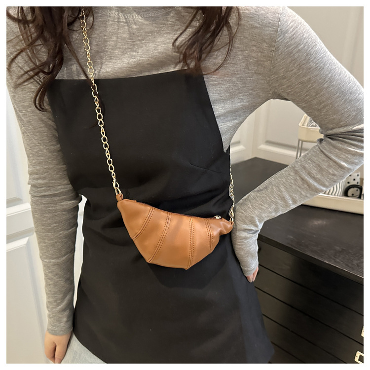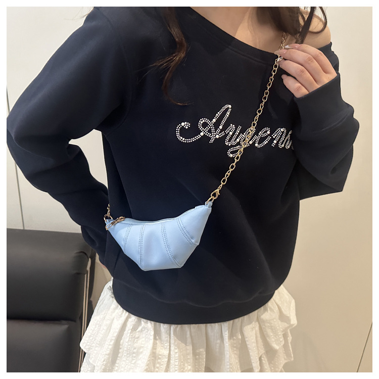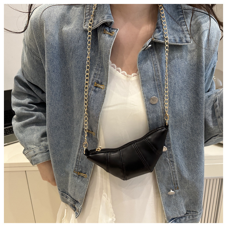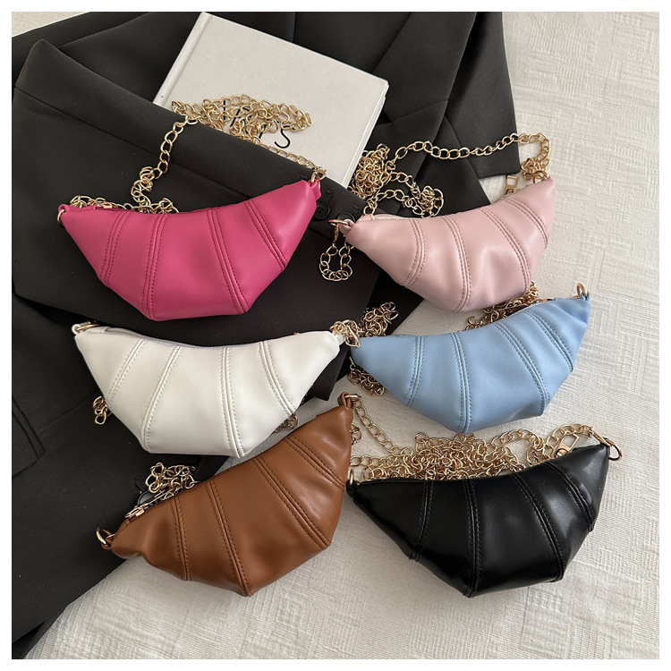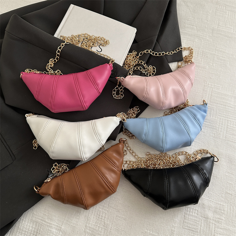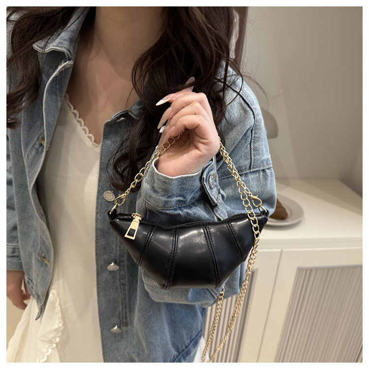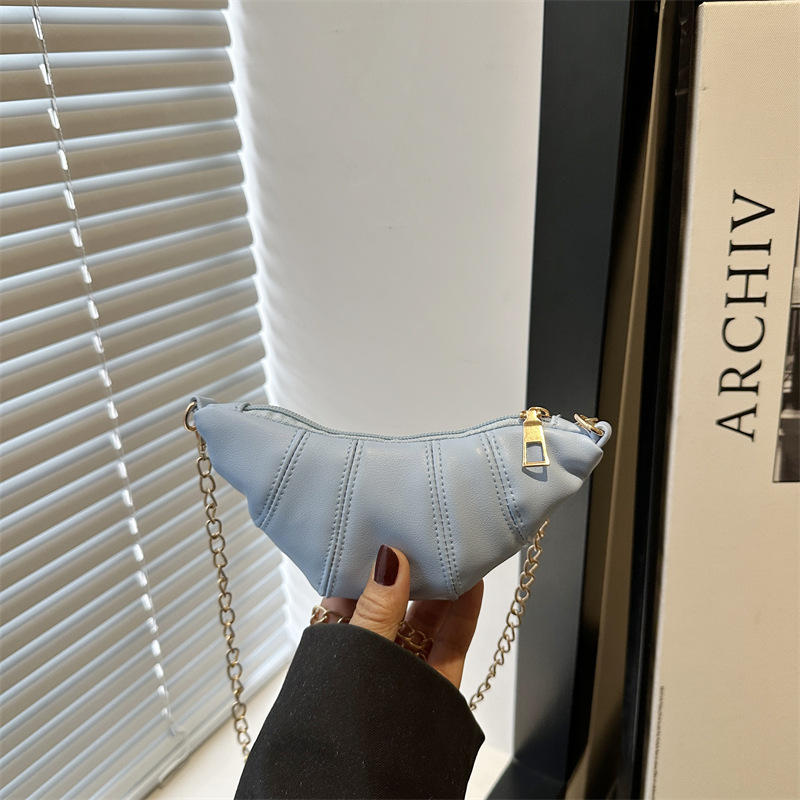 새로운 귀여운 미니 크로와상 패션 다재다능한 질감 체인 가방 솔리드 컬러 트렌디 크로스 바디 백 통근 동전 지갑