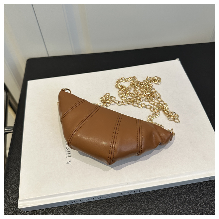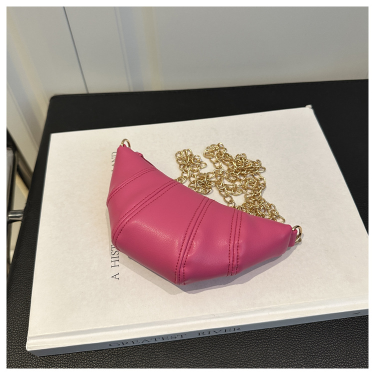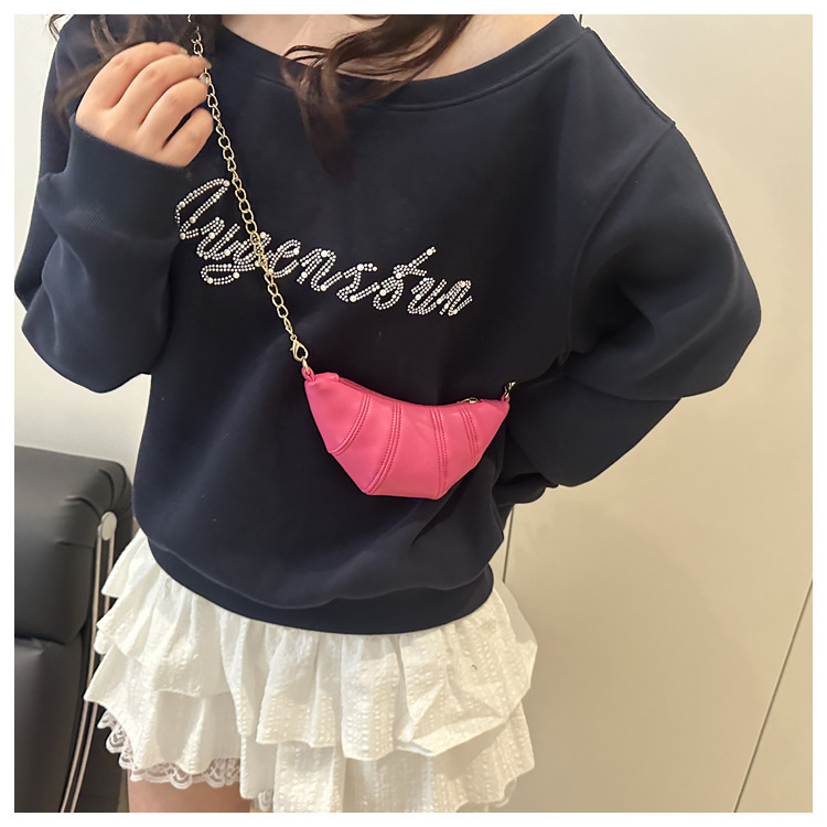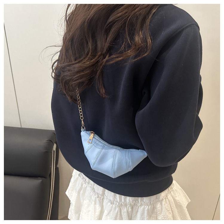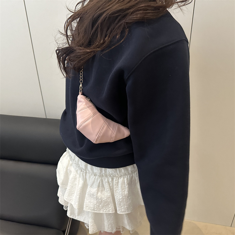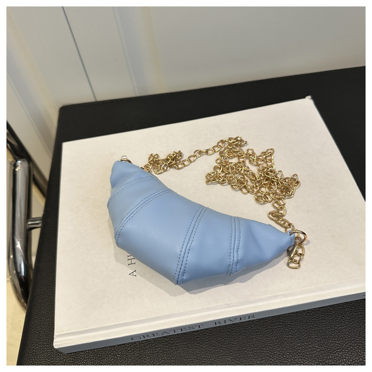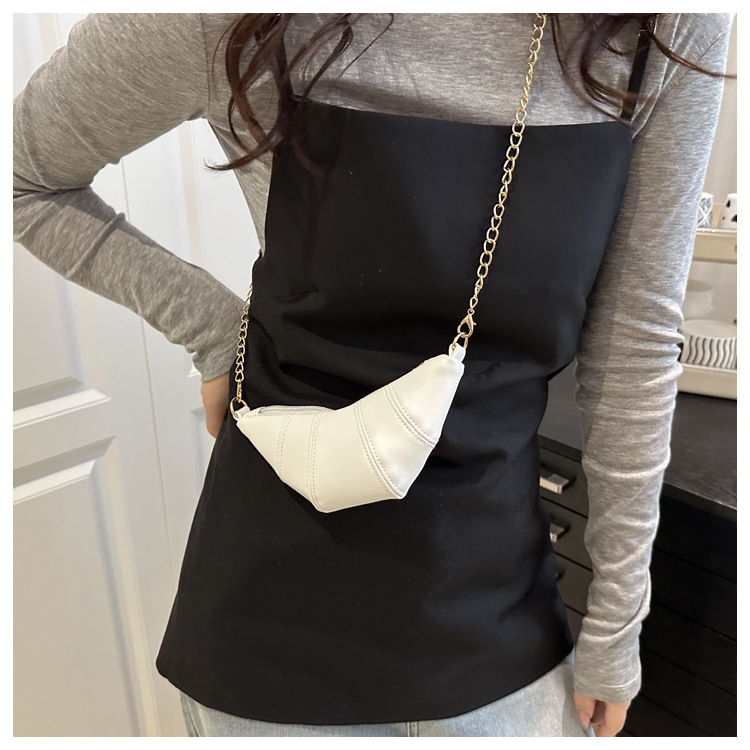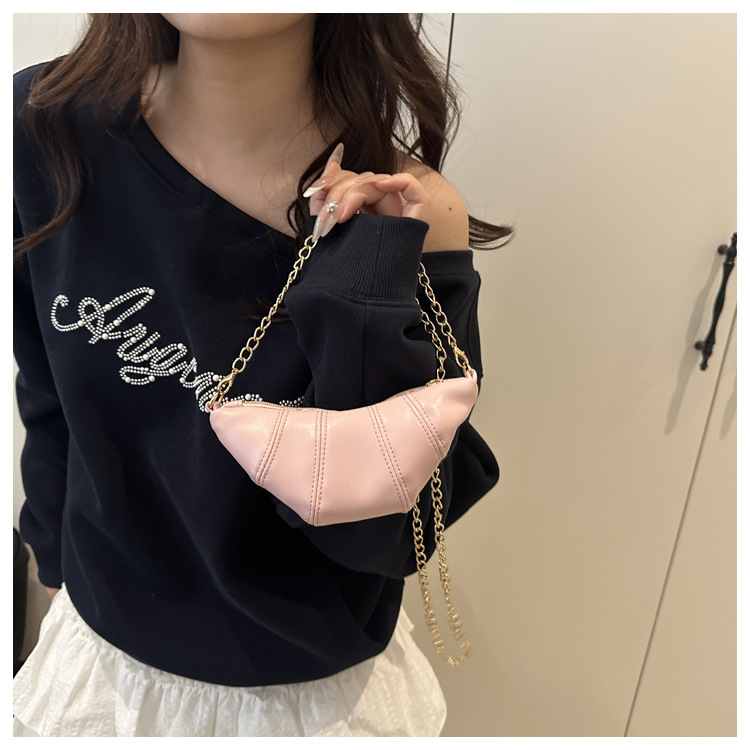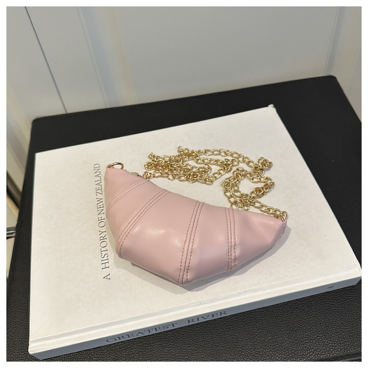 새로운 귀여운 미니 크로와상 패션 다재다능한 질감 체인 가방 솔리드 컬러 트렌디 크로스 바디 백 통근 동전 지갑