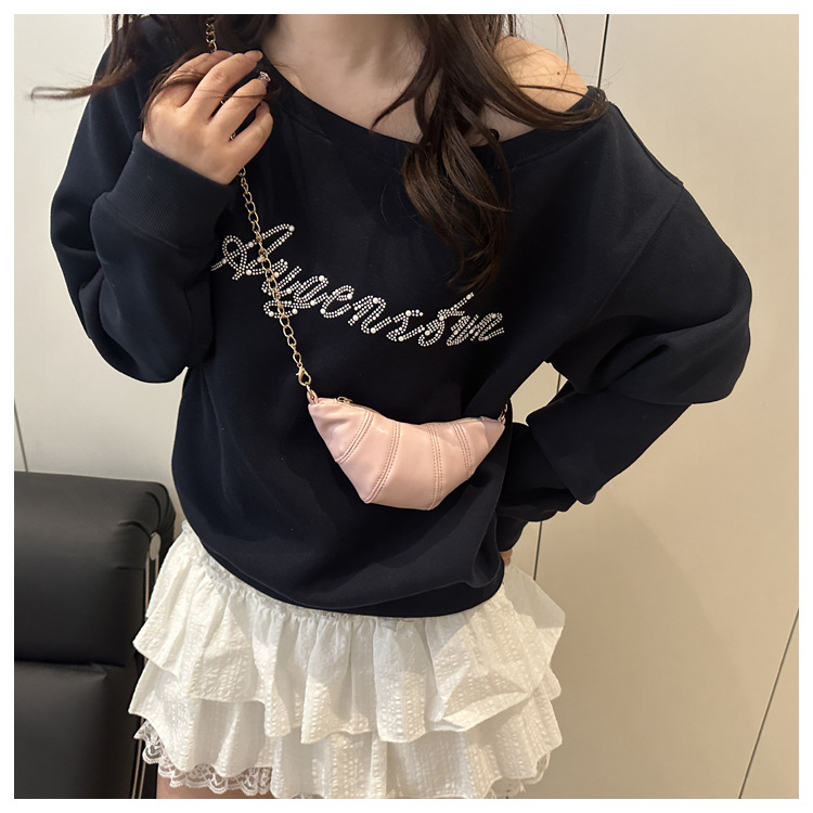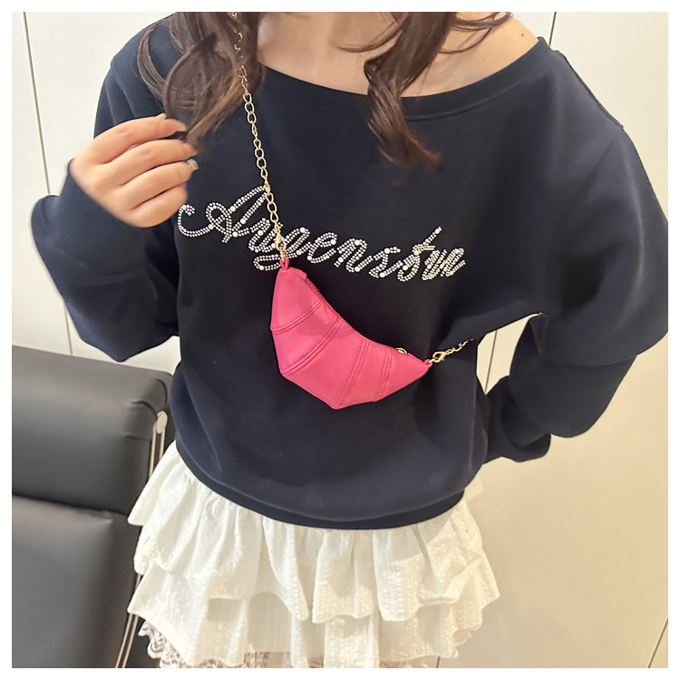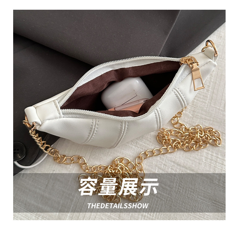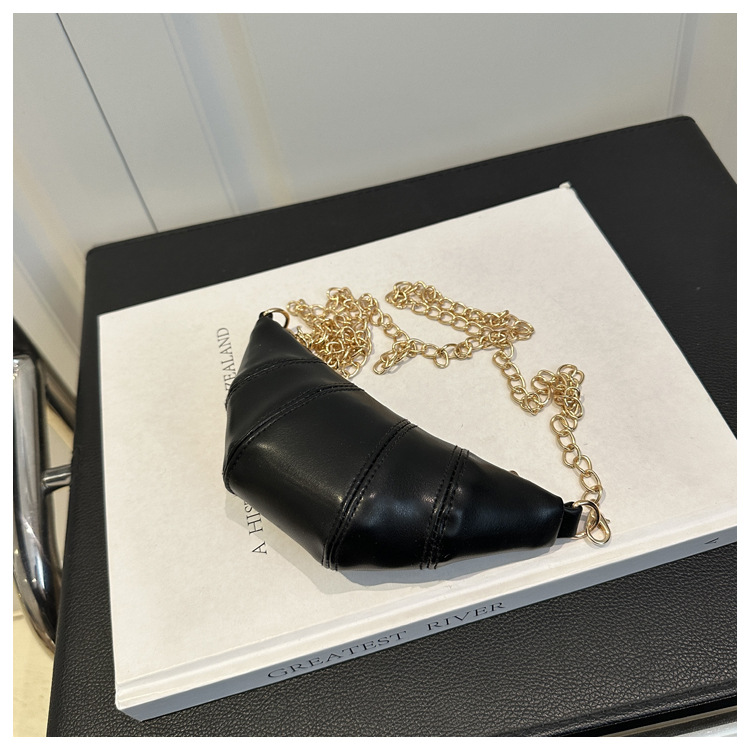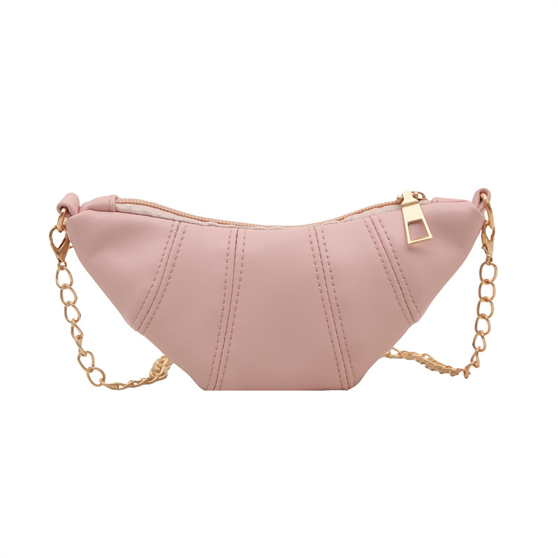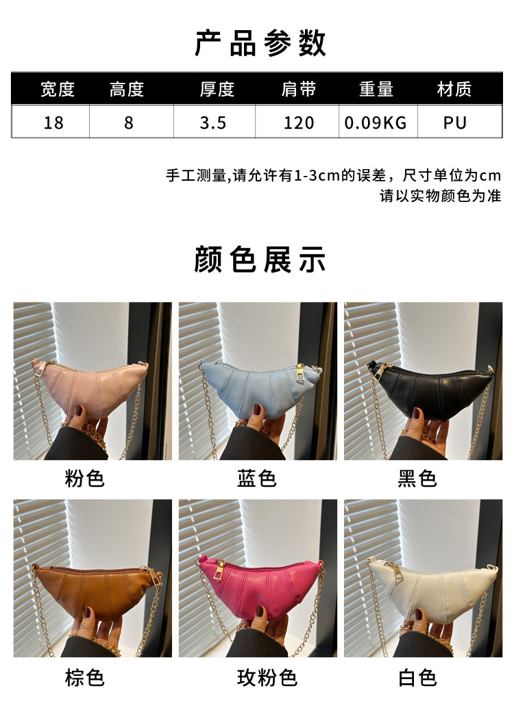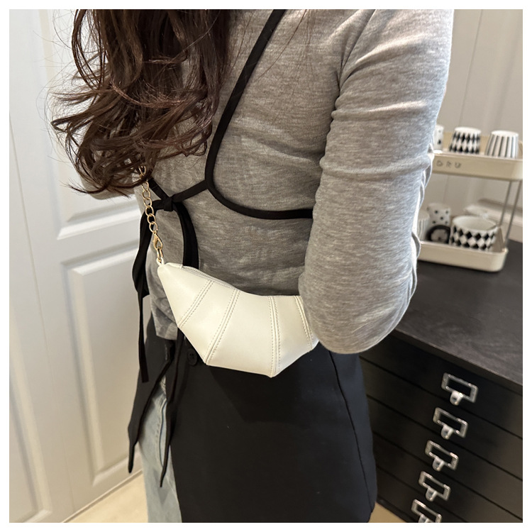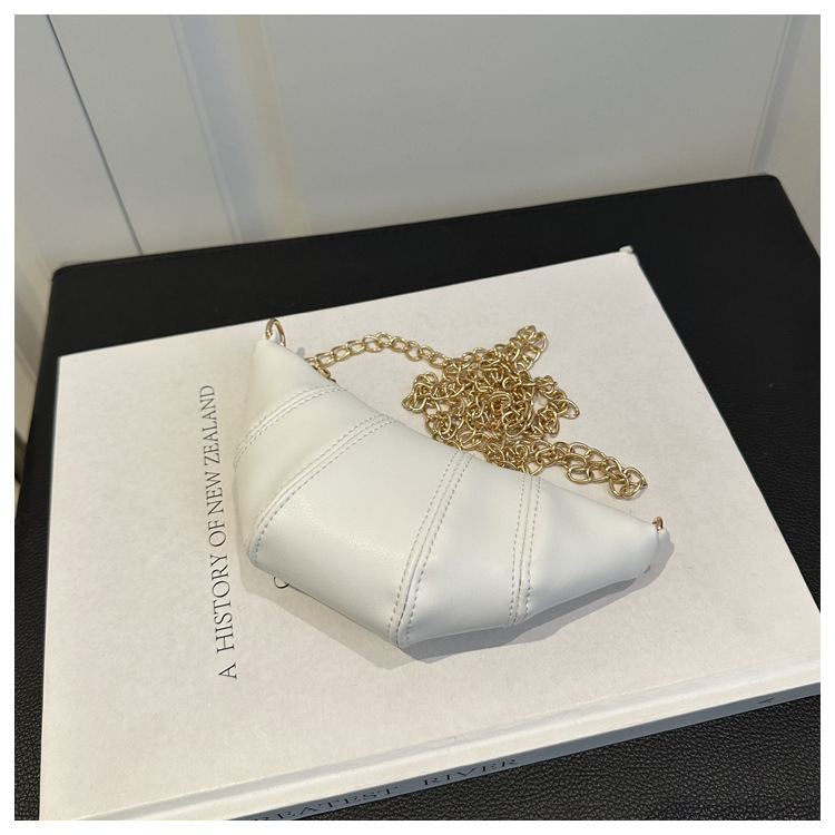 새로운 귀여운 미니 크로와상 패션 다재다능한 질감 체인 가방 솔리드 컬러 트렌디 크로스 바디 백 통근 동전 지갑