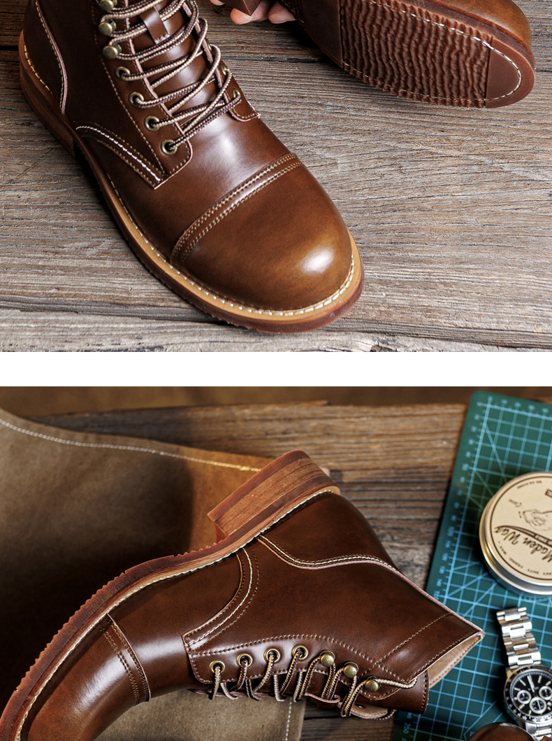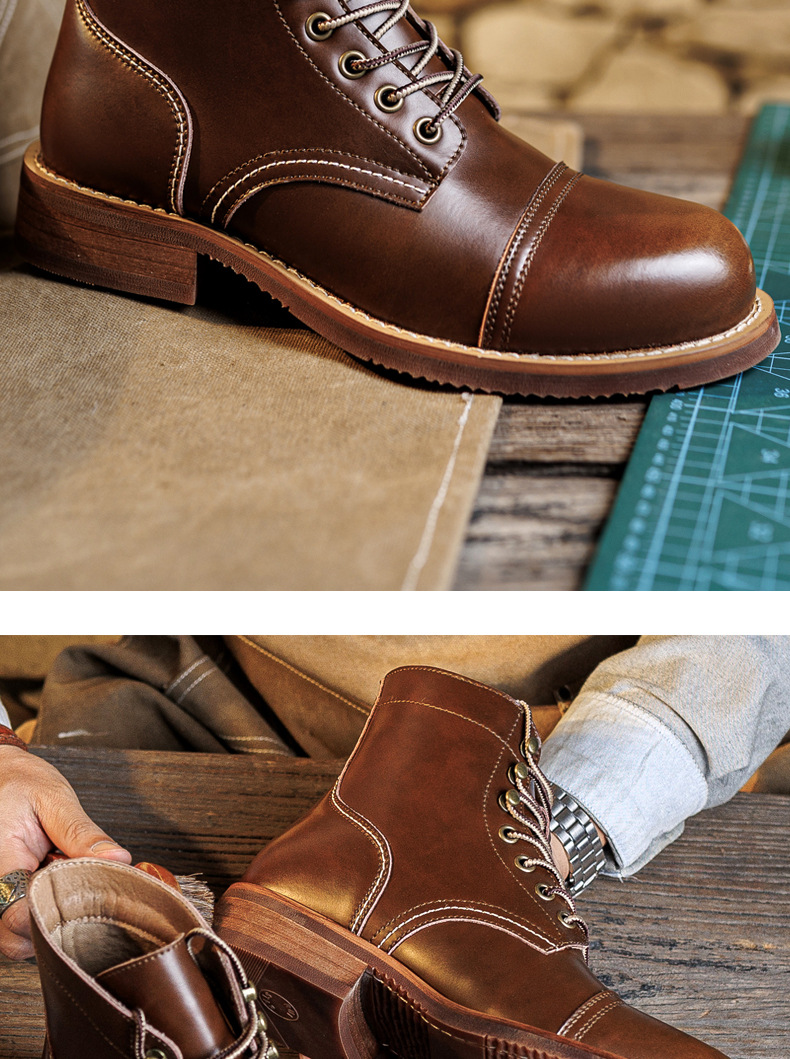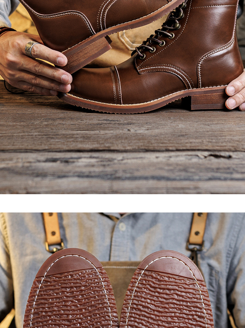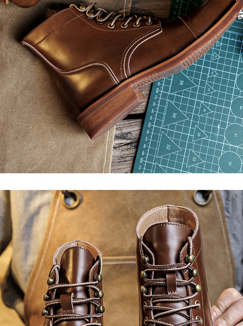 8111 툴링 부츠 남자 마틴 부츠 Ami Kaji 아메리칸 스타일 빈티지 가죽 발목 부츠 낙하산 장화 미친 말 가죽 오토바이 부츠