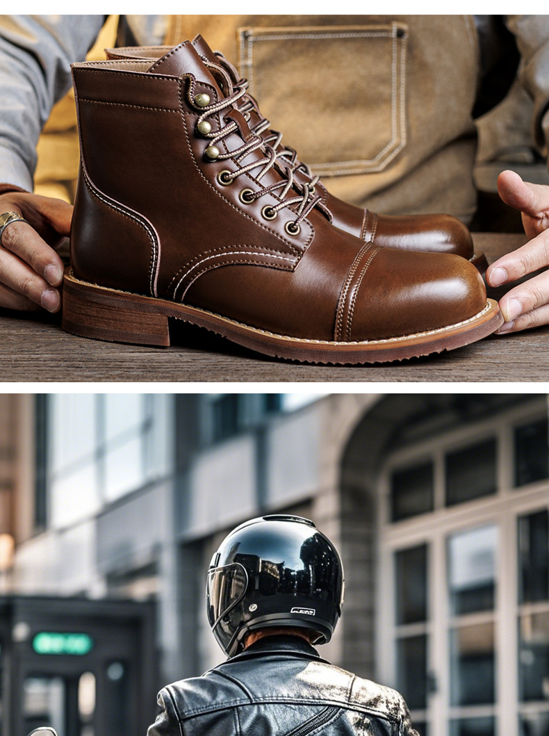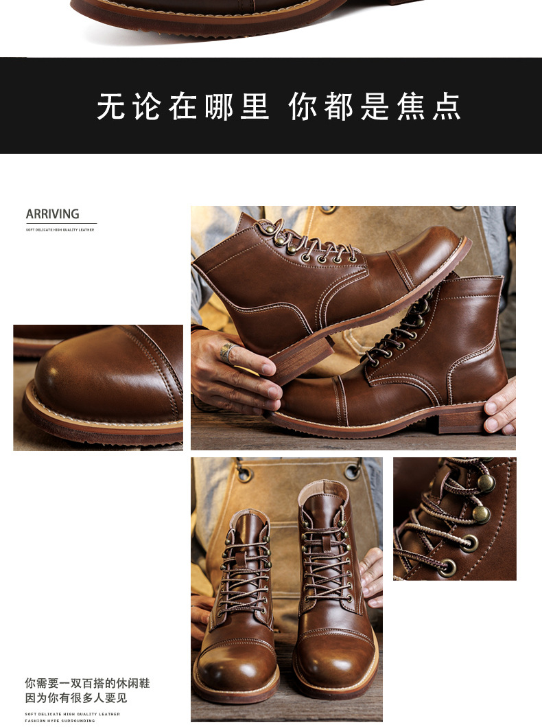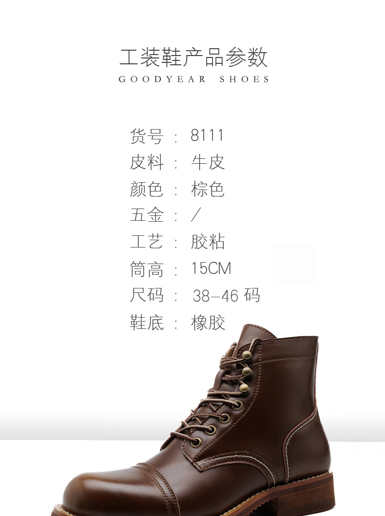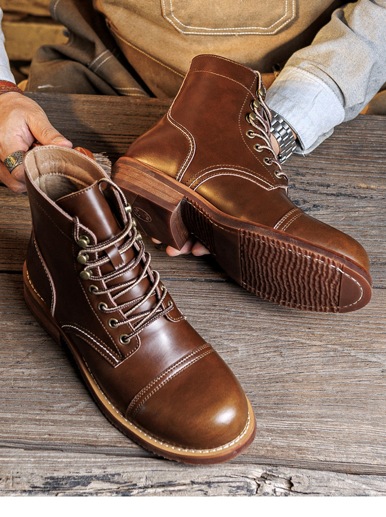 8111 툴링 부츠 남자 마틴 부츠 Ami Kaji 아메리칸 스타일 빈티지 가죽 발목 부츠 낙하산 장화 미친 말 가죽 오토바이 부츠