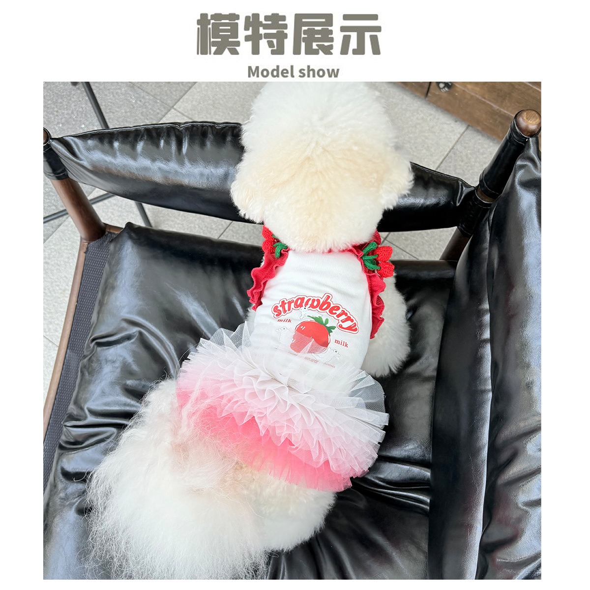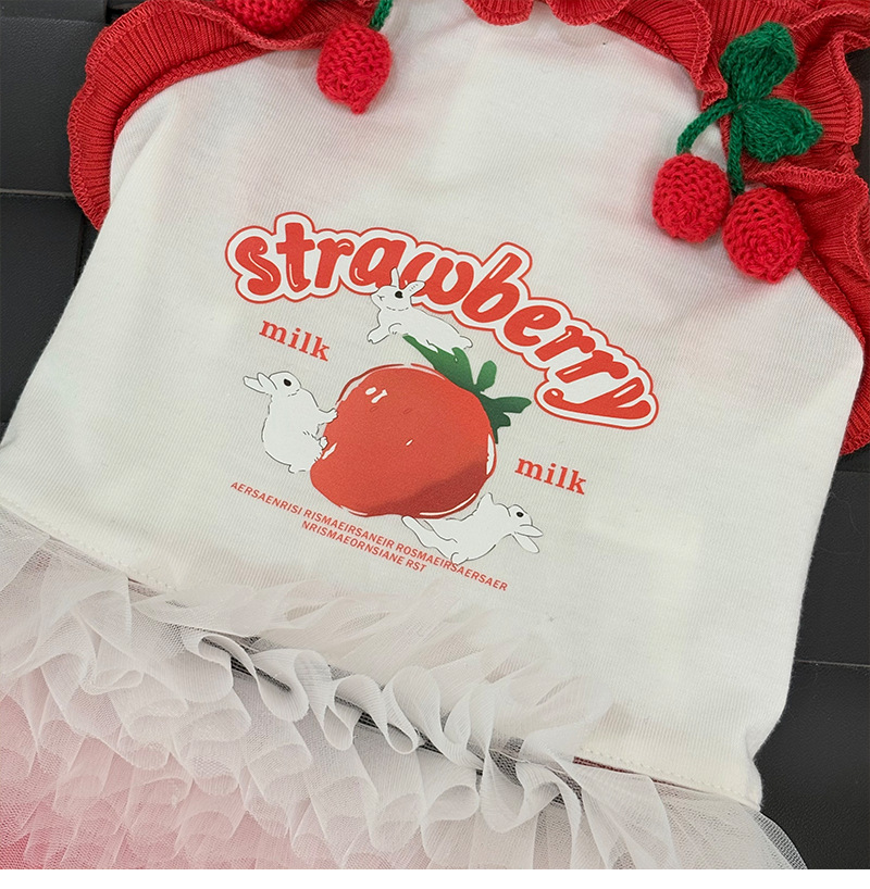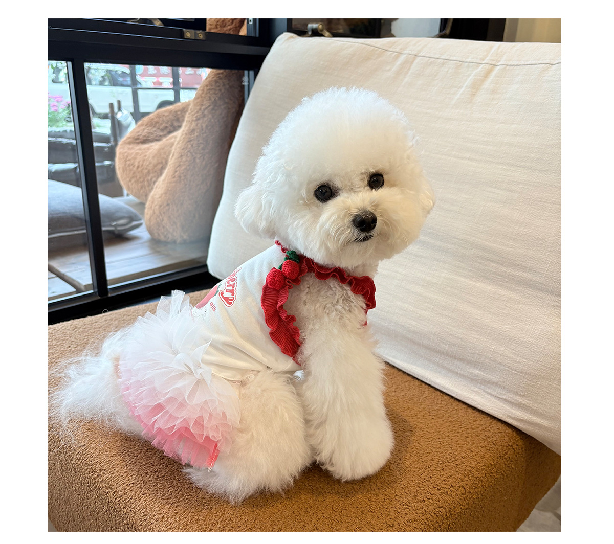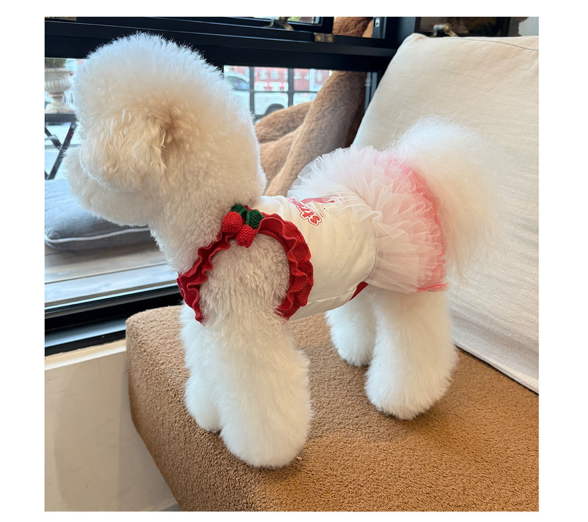 애완 동물 개 고양이 옷 슬링 공주 스커트 작은 개 고양이 체리 인쇄 편안한 바지 스커트