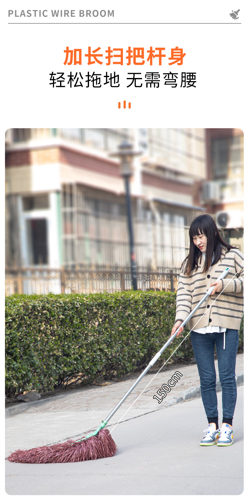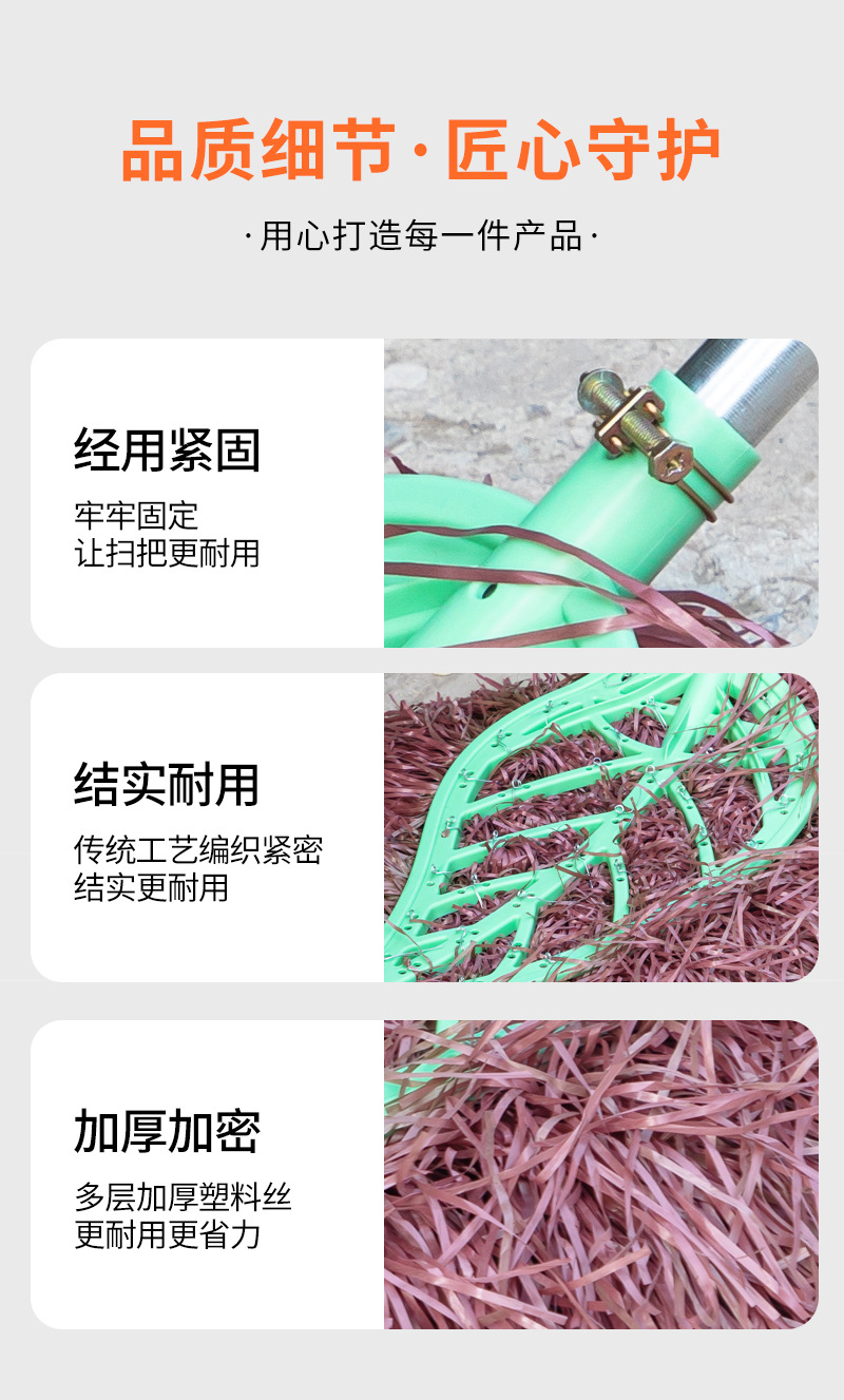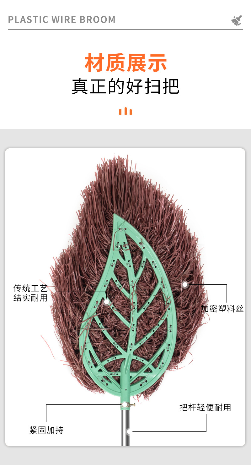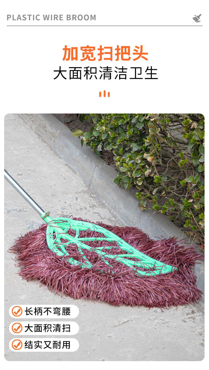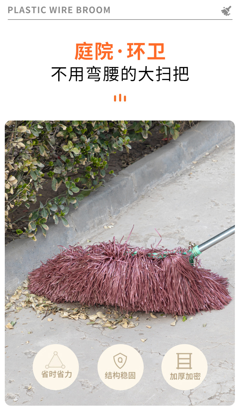 가정용 손잡이형 청소용 빗자루, 긴 모델, 고밀도 빗자루, 마당 청소, 바닥 청소 도구, 두꺼운 먼지 제거 청소용품