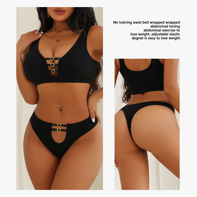 국경 간 새로운 유럽과 미국의 중공 섹시한 원활한 속옷 세트 여성 푸시 업 브래지어 조끼 스포츠 통기성 세트 여성