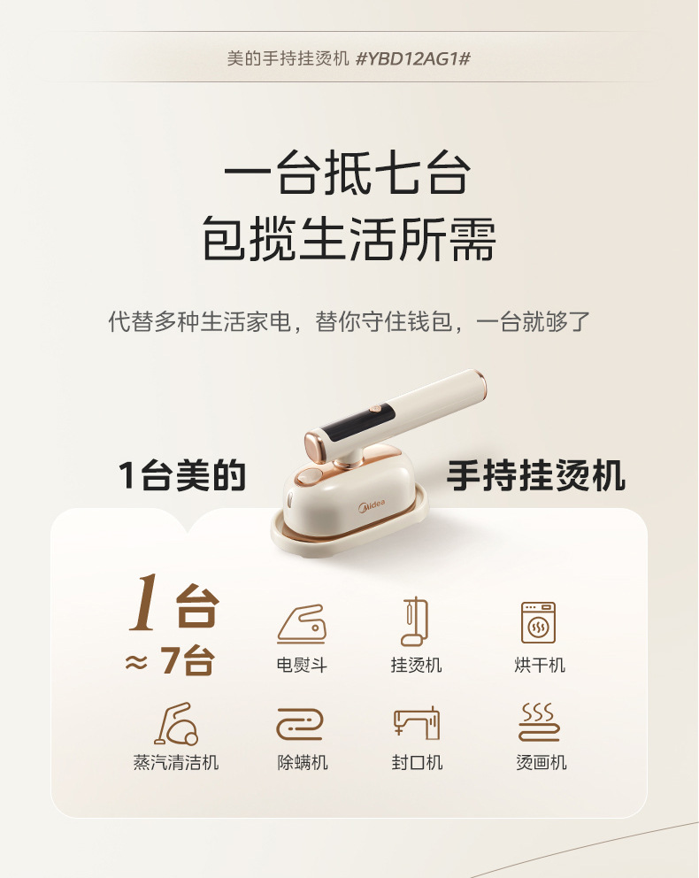 Midea 의류 다림질 기계 가정용 스팀 스마트 다림질 기계 고효율 진드기 제거 및 살균 휴대용 전기 다리미 YBD12AK1