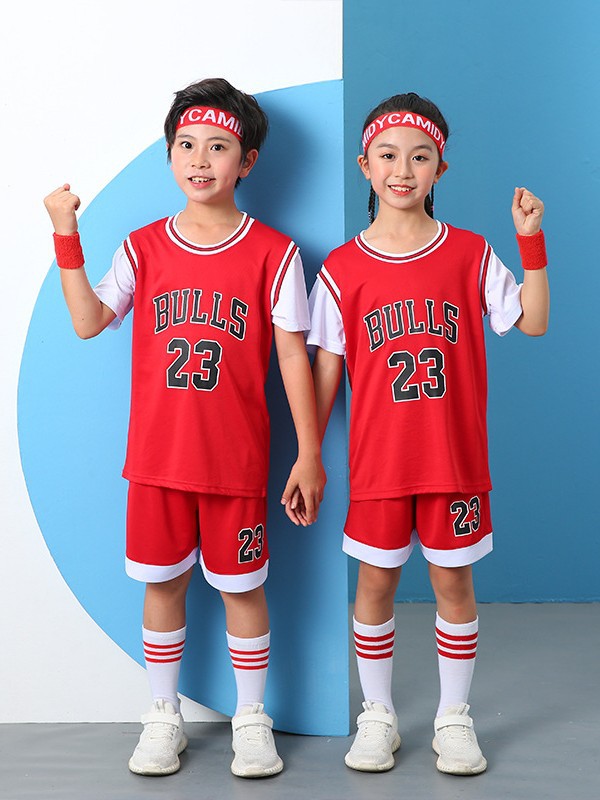어린이 농구 유니폼 세트 스포츠 여름 반팔 초등학생 중국 스타일 유치원 어린이 날 공연 유니폼 가짜 두 조각