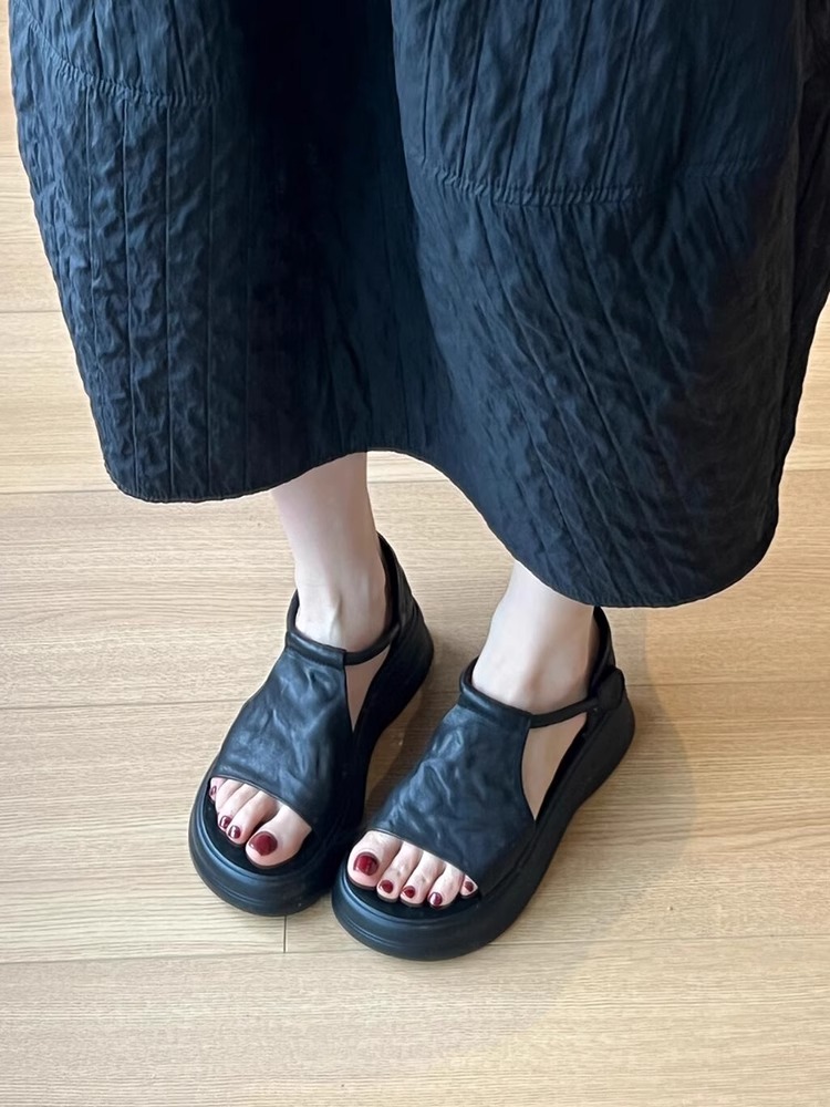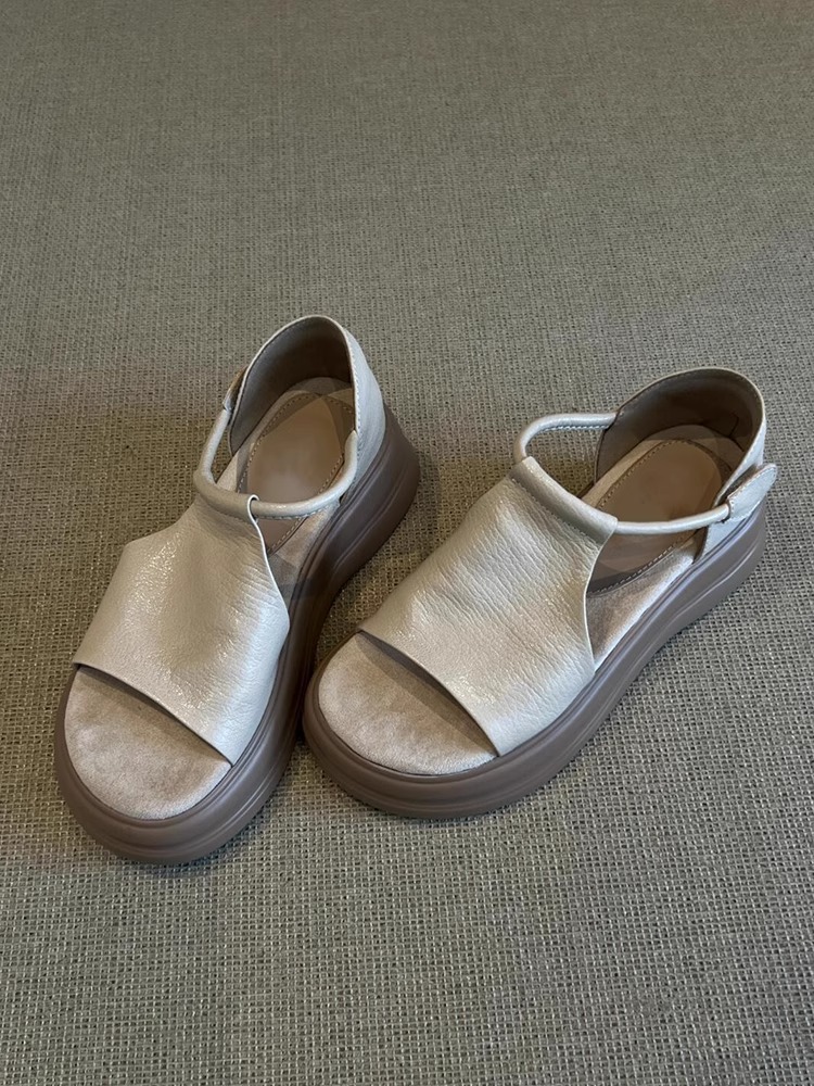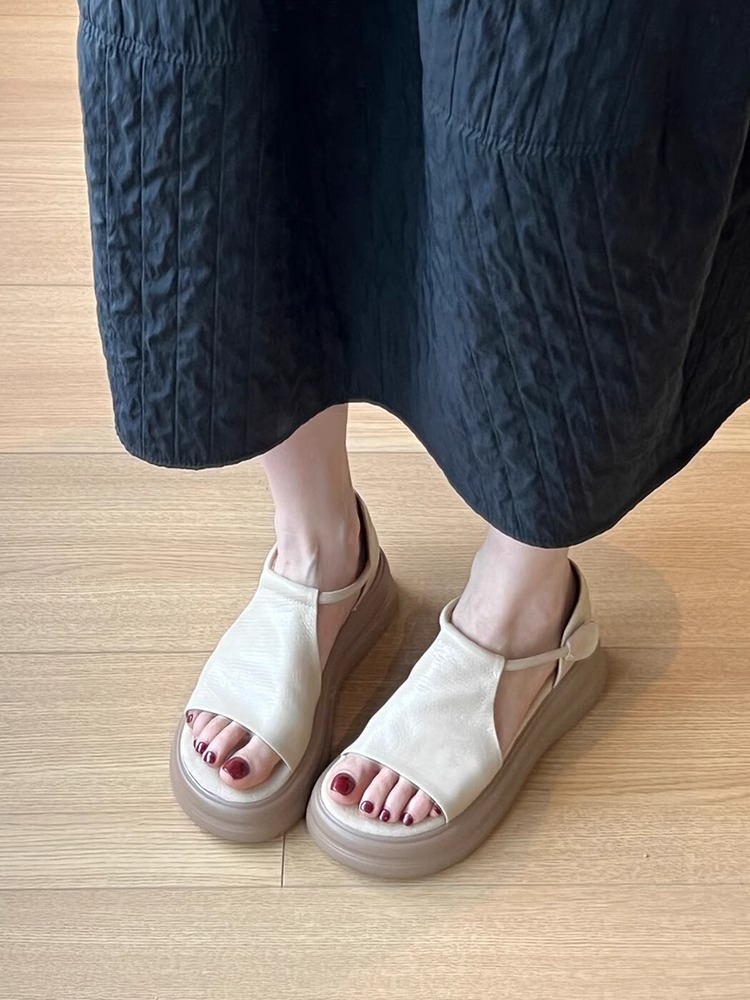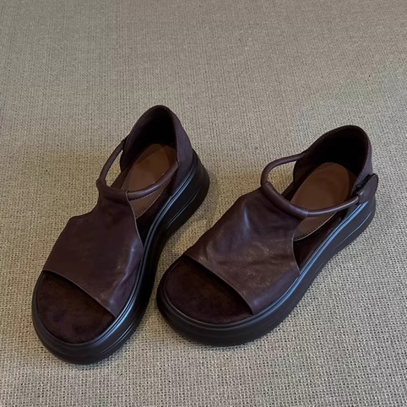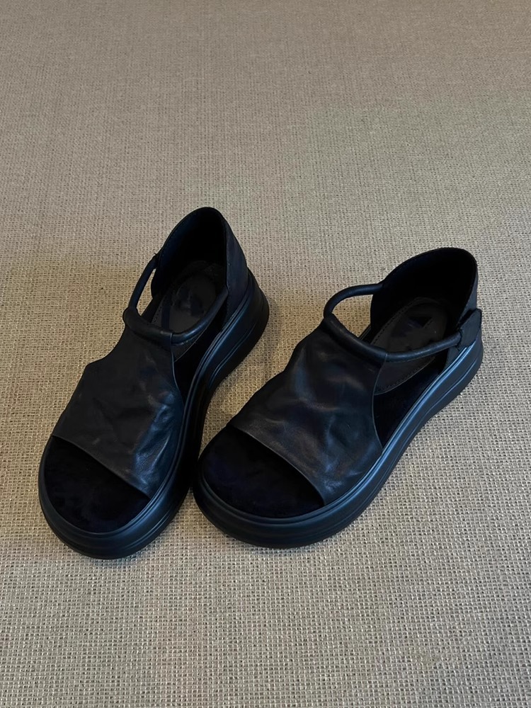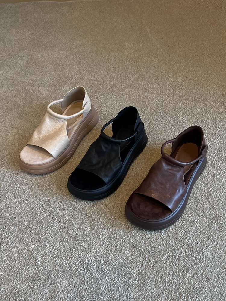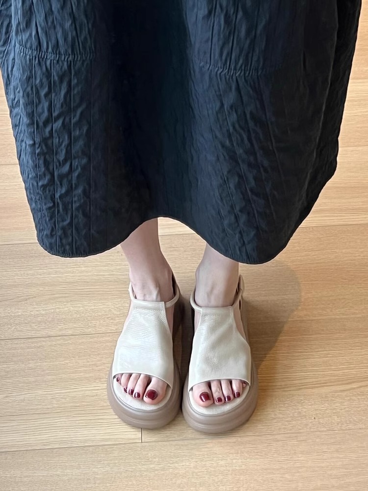 부드러운 가죽 버전! 레트로 캐주얼 중공 플랫폼 두꺼운 밑창 샌들 여성 패션 여름 새로운 다목적 작은 로마 신발