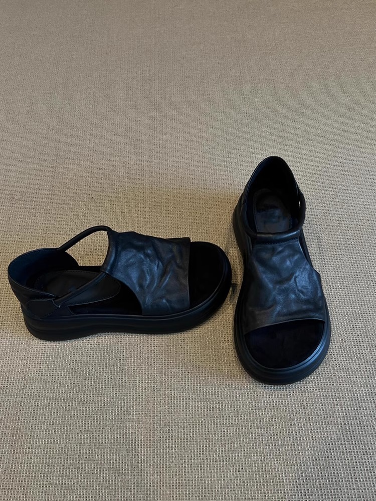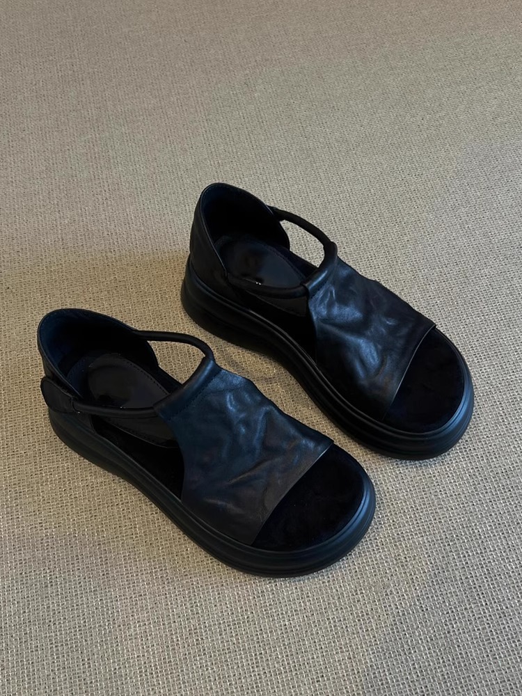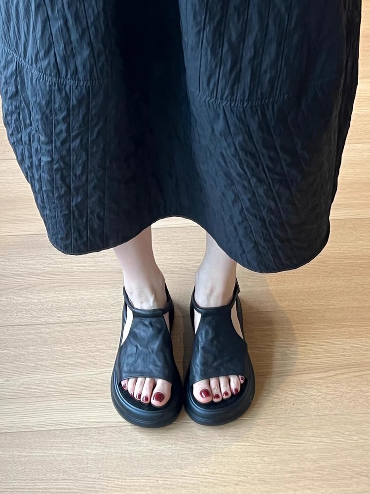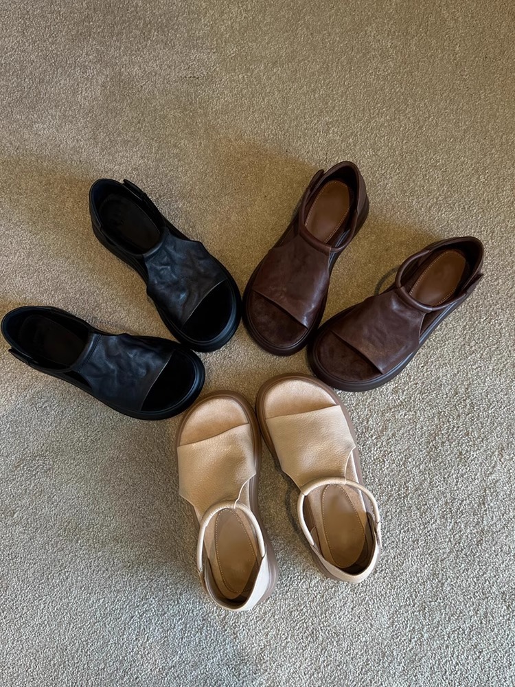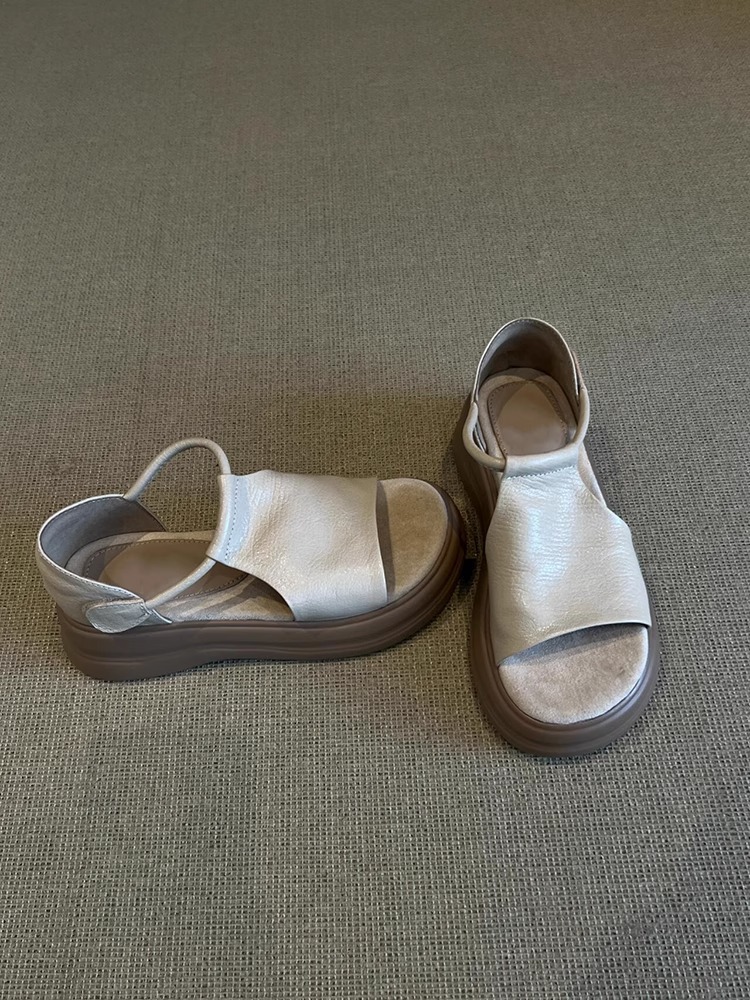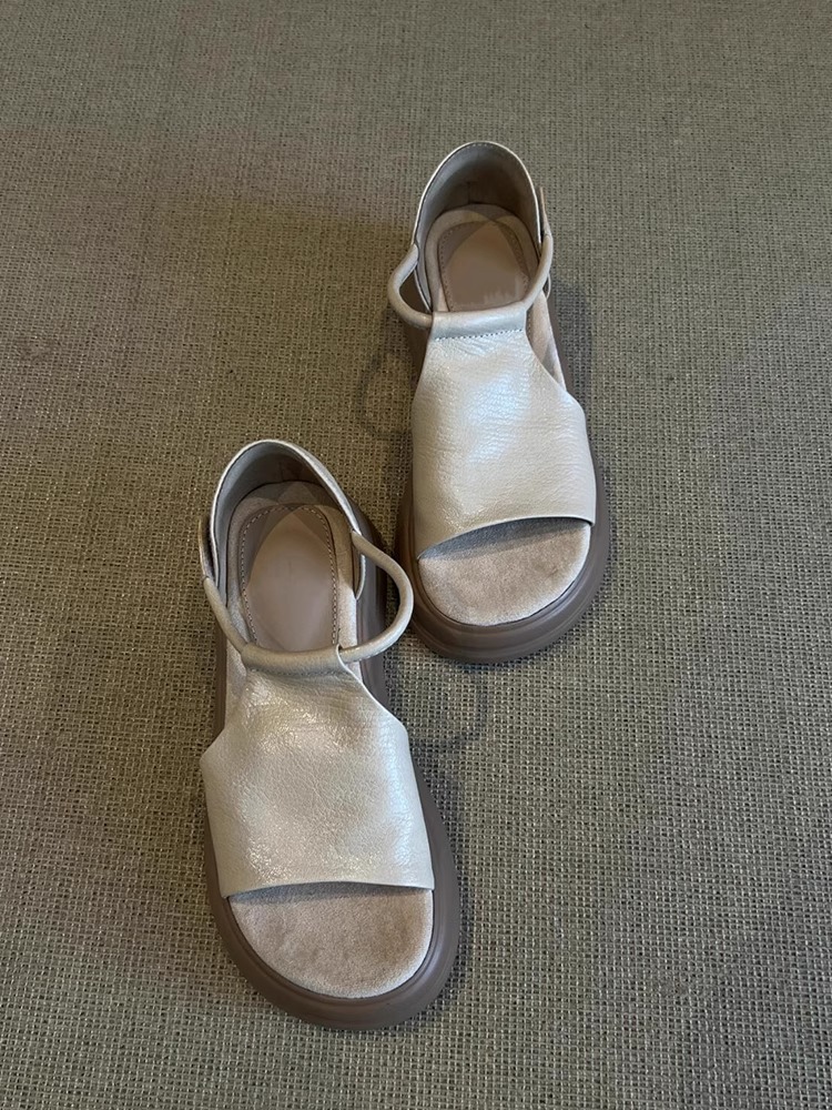 부드러운 가죽 버전! 레트로 캐주얼 중공 플랫폼 두꺼운 밑창 샌들 여성 패션 여름 새로운 다목적 작은 로마 신발