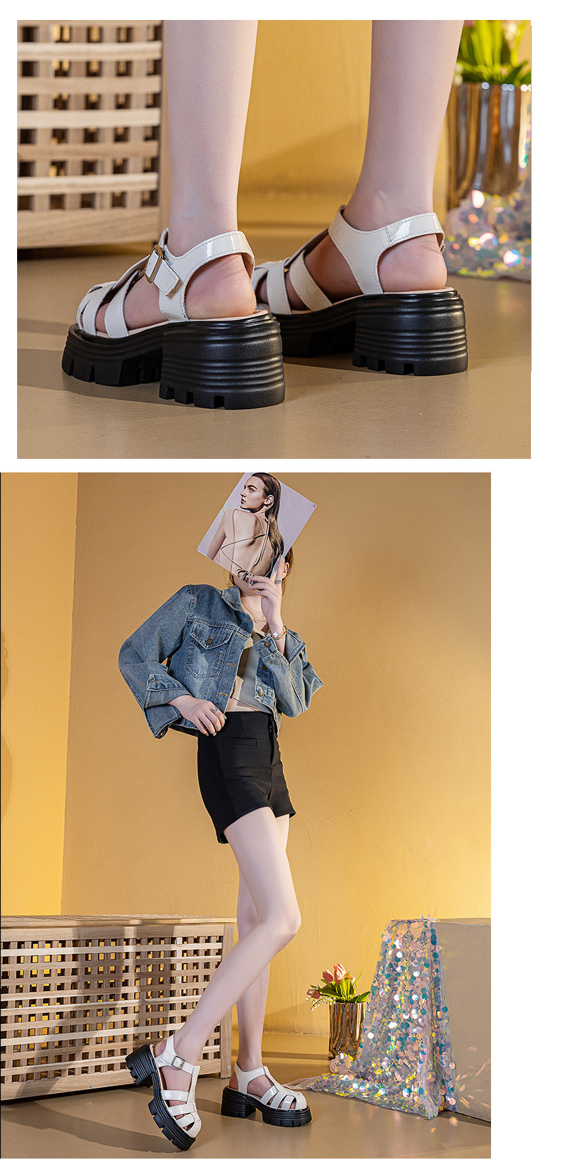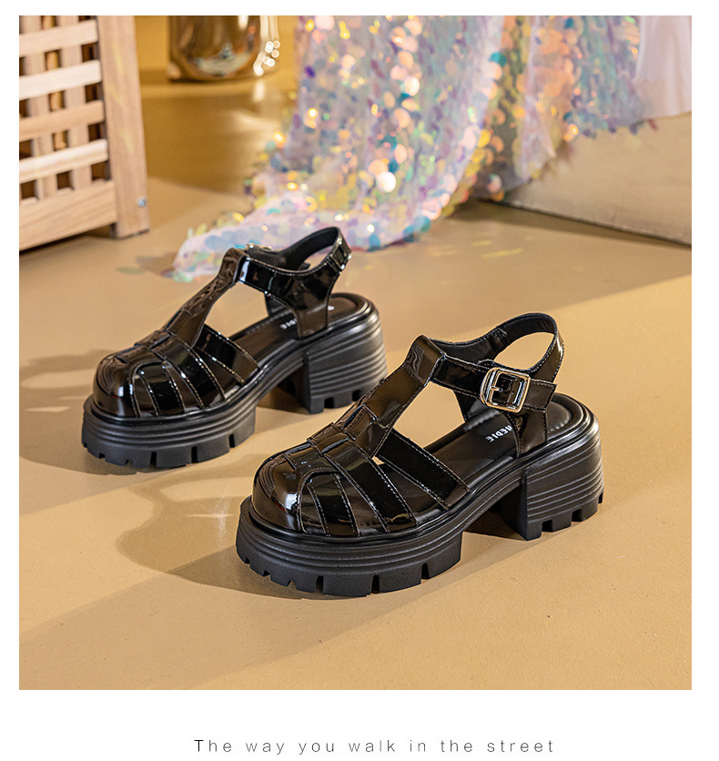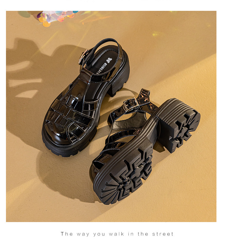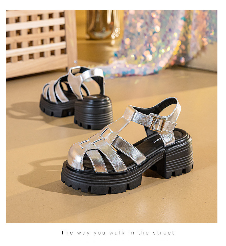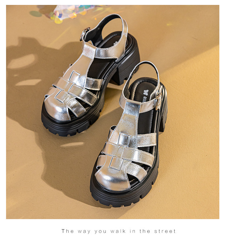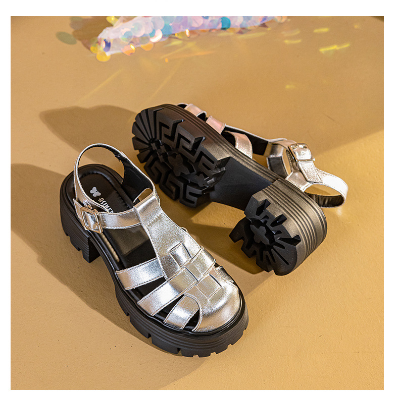 바오터우 로마 샌들 여성용 2025 여름 신상 두꺼운 밑창 플랫폼 슈즈 브레이드 레이스업 굽이 두꺼운 샌들 여성화