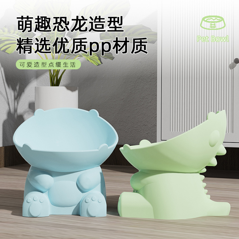 애완 동물 용품 고양이 그릇 안티 노크 공룡 고양이 먹이 그릇 청소하기 쉬운 목 그릇 높은 다리 애완 동물 그릇 고양이 분지 개 분지