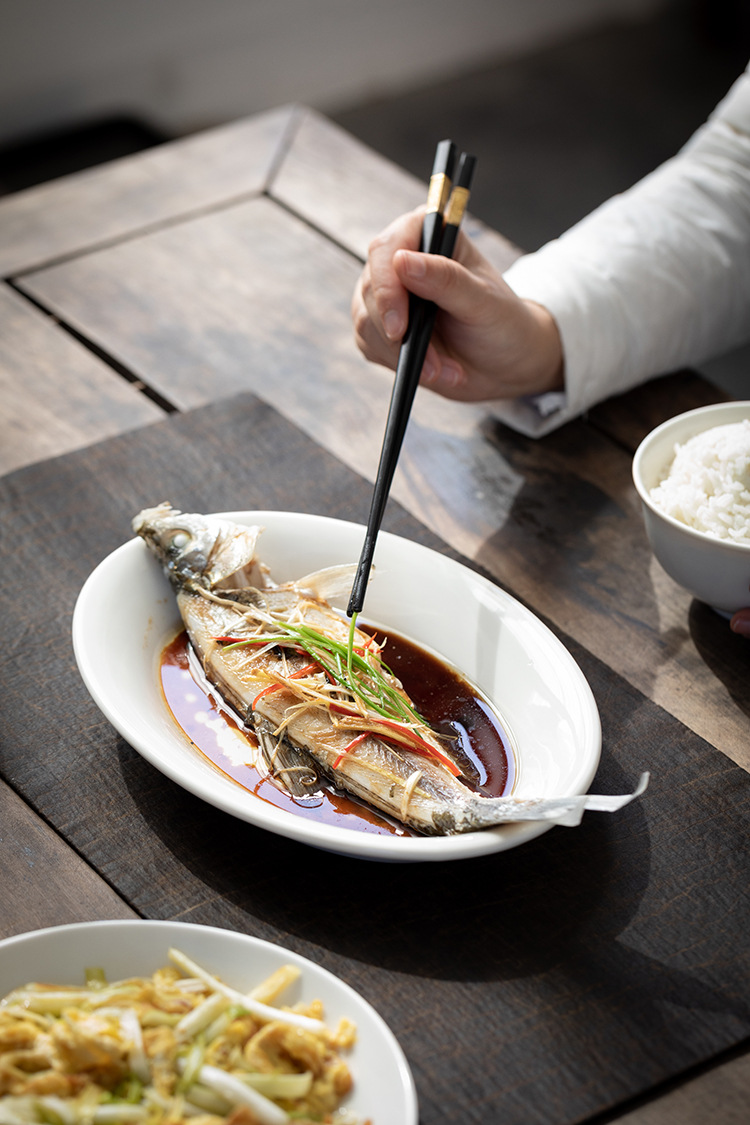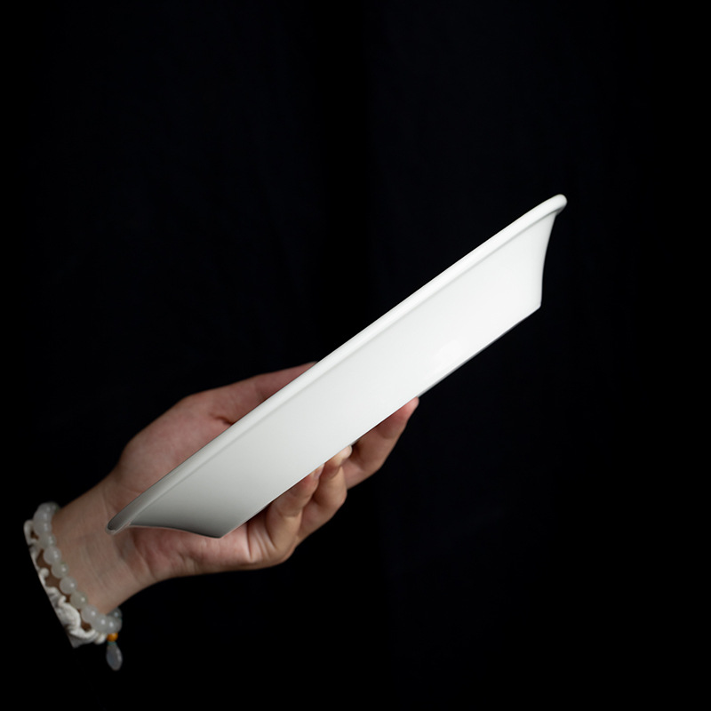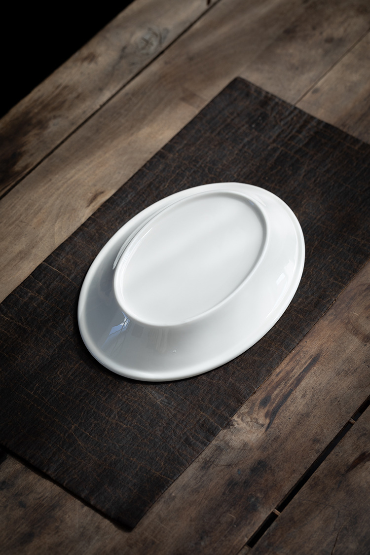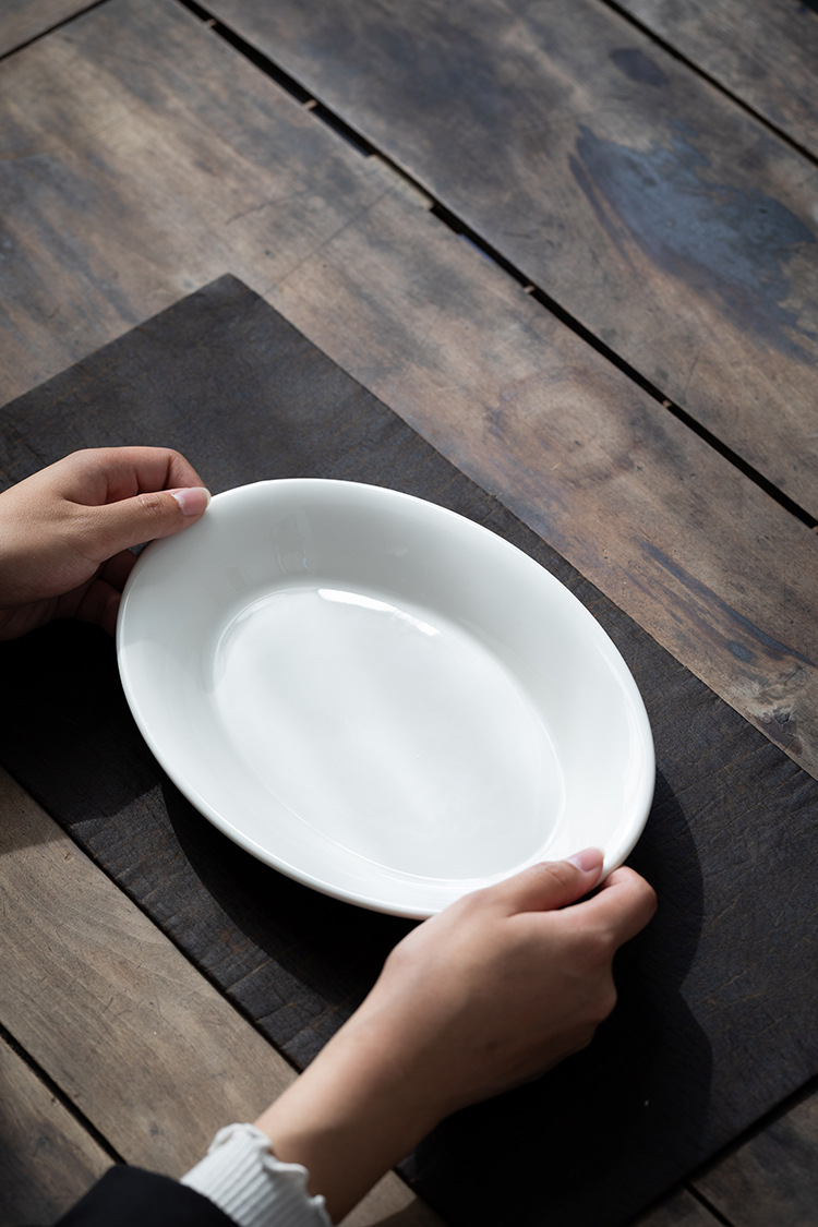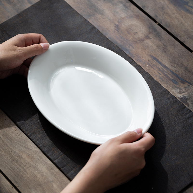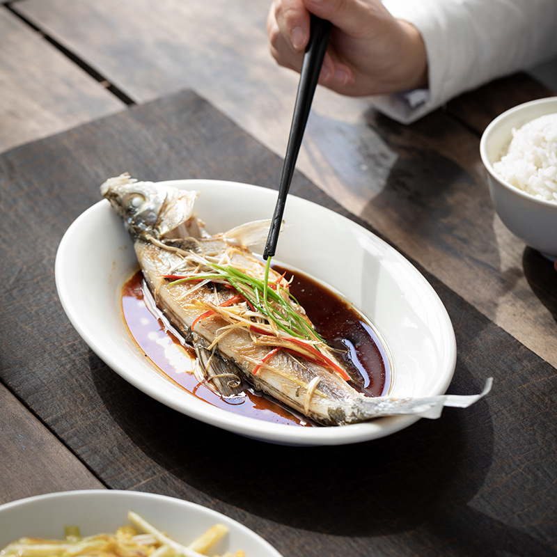 [쌀 화이트] 더화 백자 타원형 생선 접시 10.2 인치 세라믹 찐 생선 깊은 접시 수프 접시 식기 접시