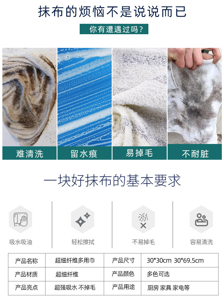 가정용 청소용 특수 수건, 물을 흡수하고 바닥을 닦는 유리 가정용 청소용 걸레, 주방 미용실 이발소 수건