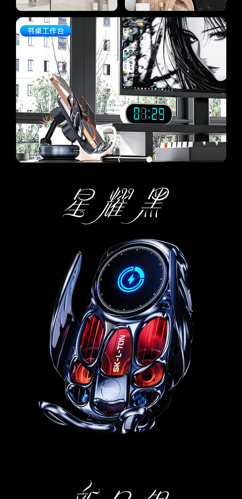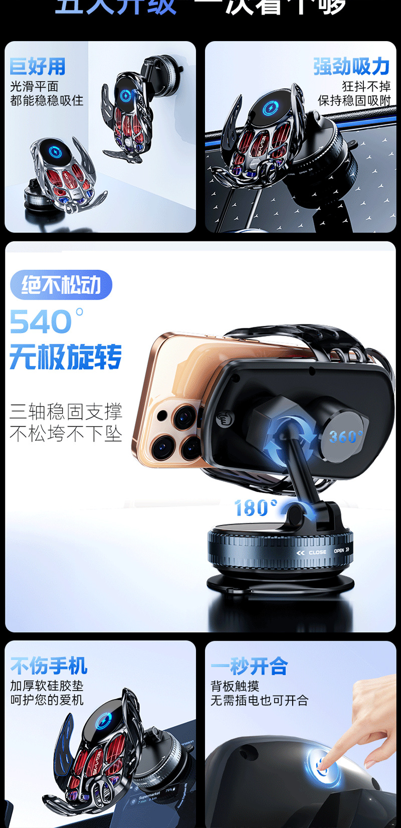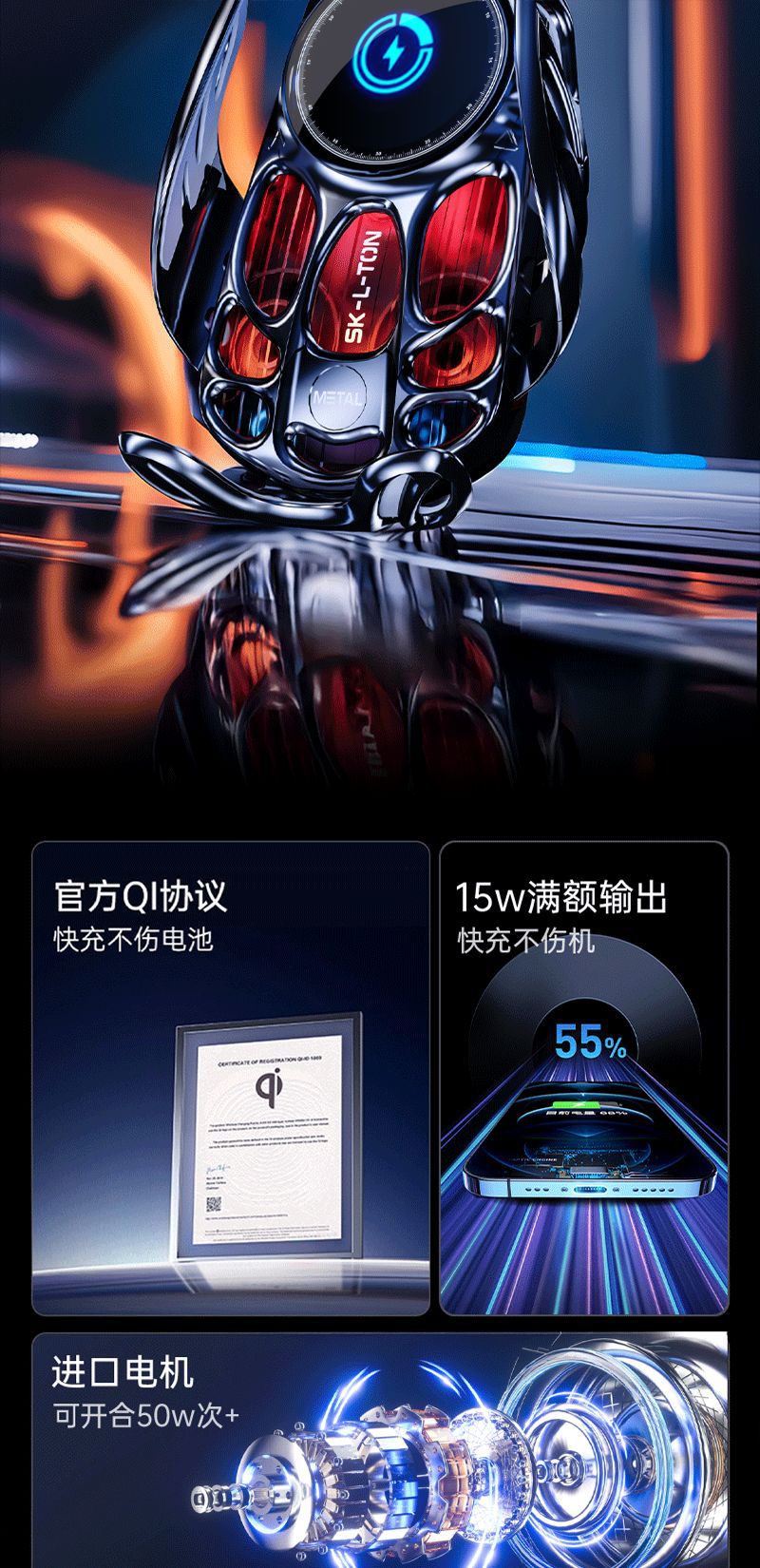 새로운 자동차 휴대 전화 홀더 무선 충전 15w 초고속 충전 전기 네비게이션 흡입 컵베이스 홀더 수정