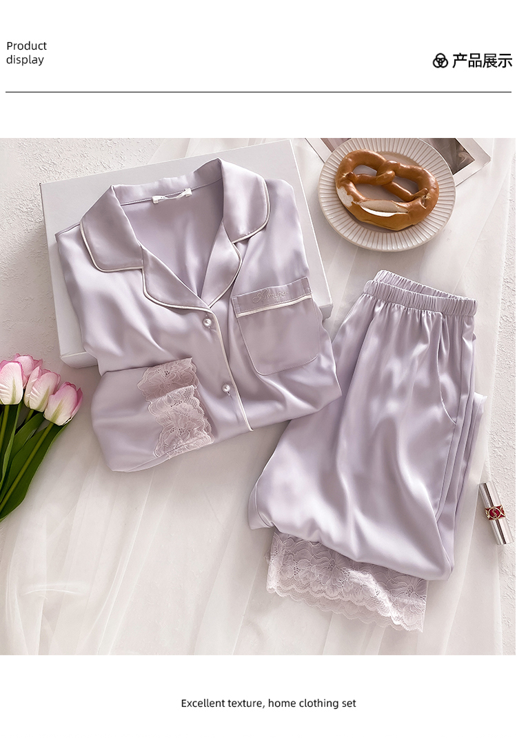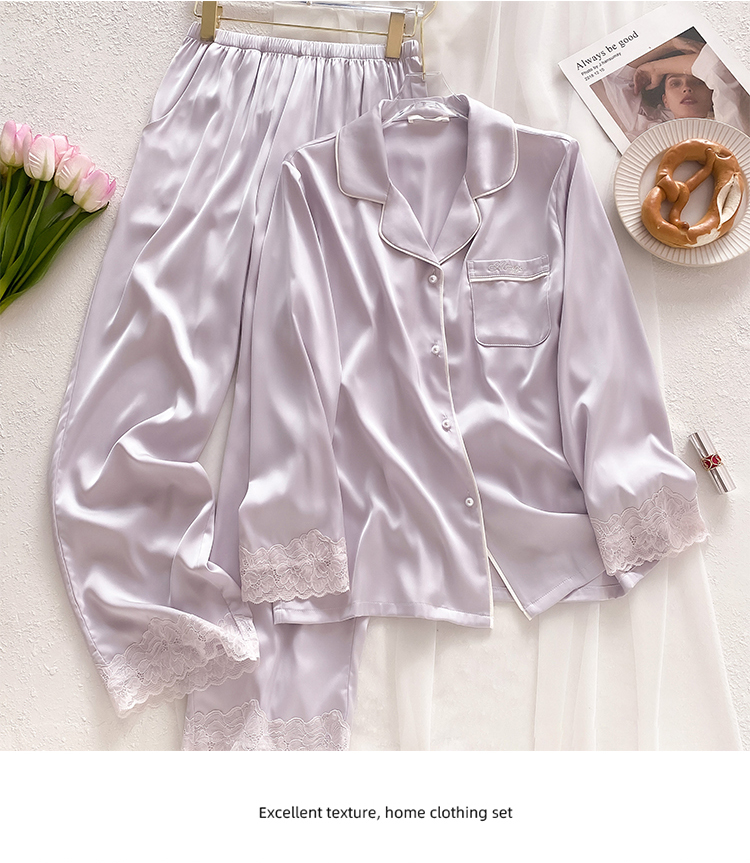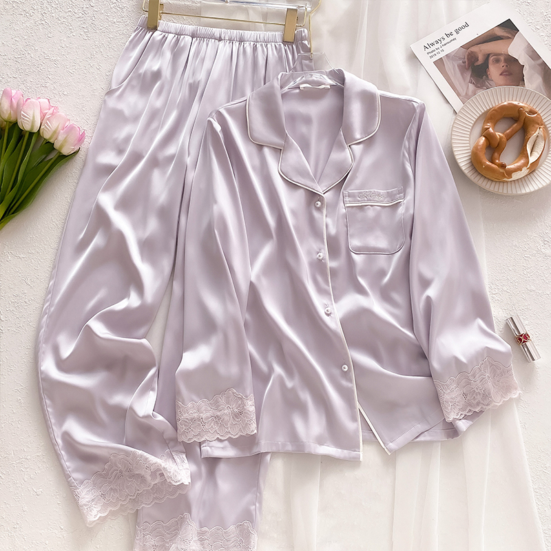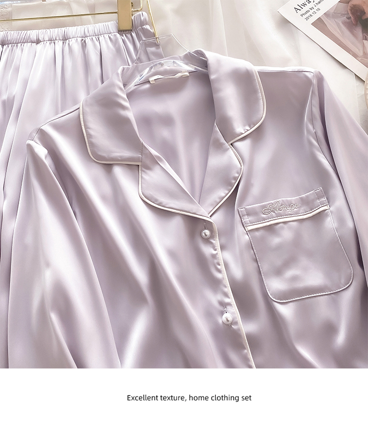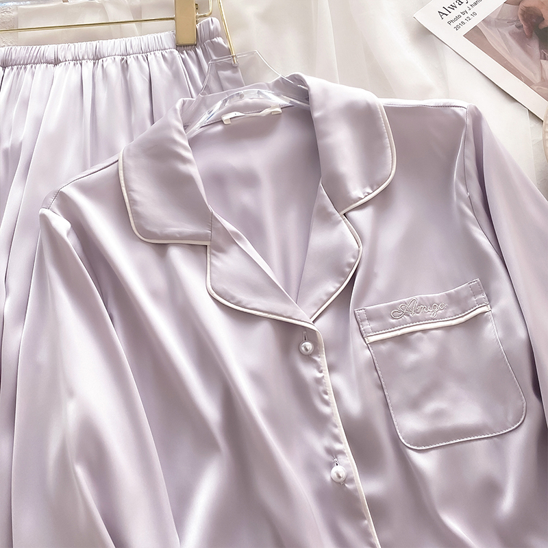 21 Mumi 여성용 헤비급 실크 잠옷 봄, 여름 솔리드 컬러 뽕나무 실크 긴팔 바지 홈웨어 세트 겉옷