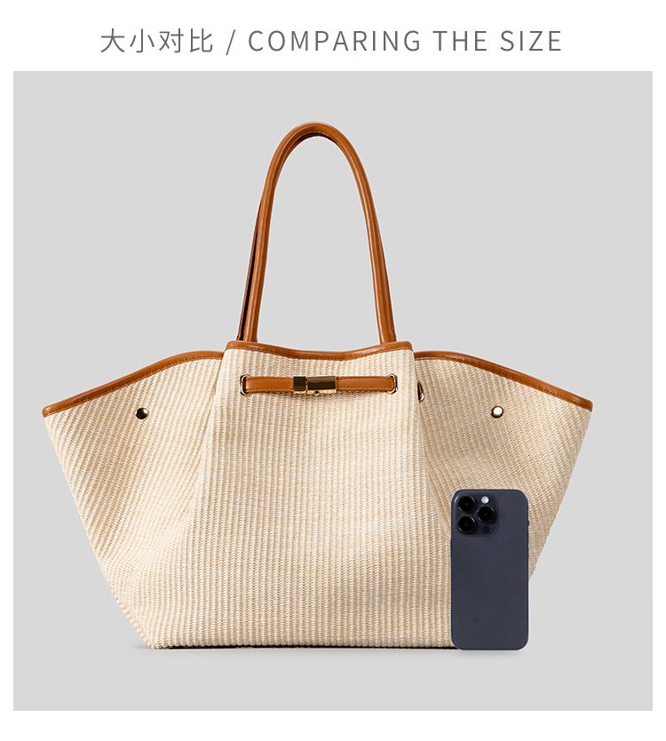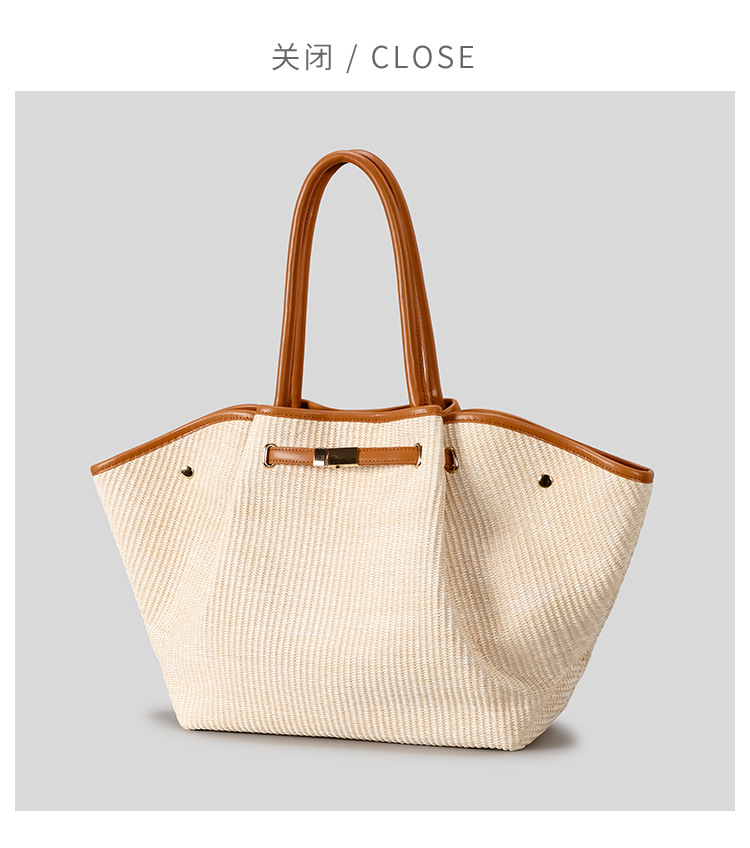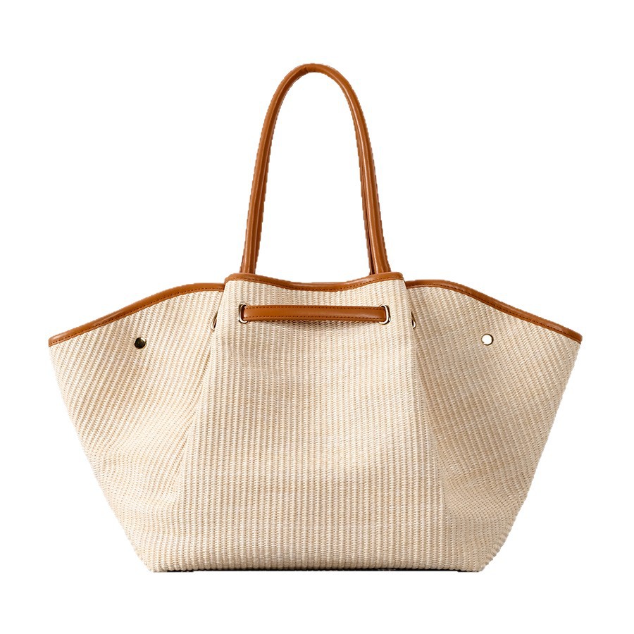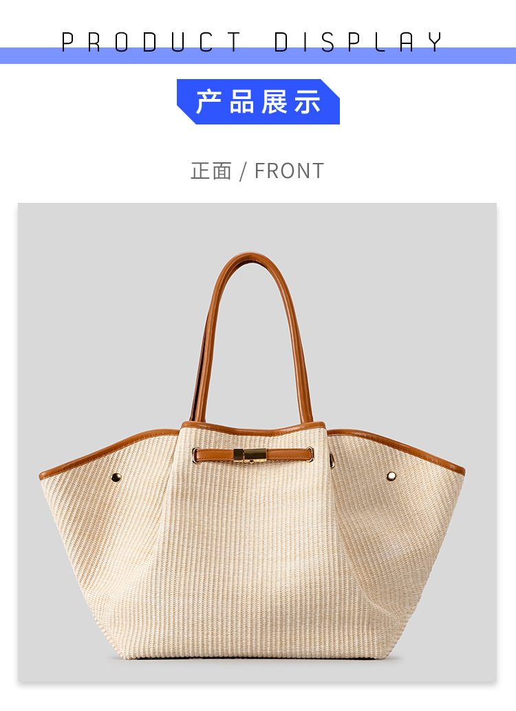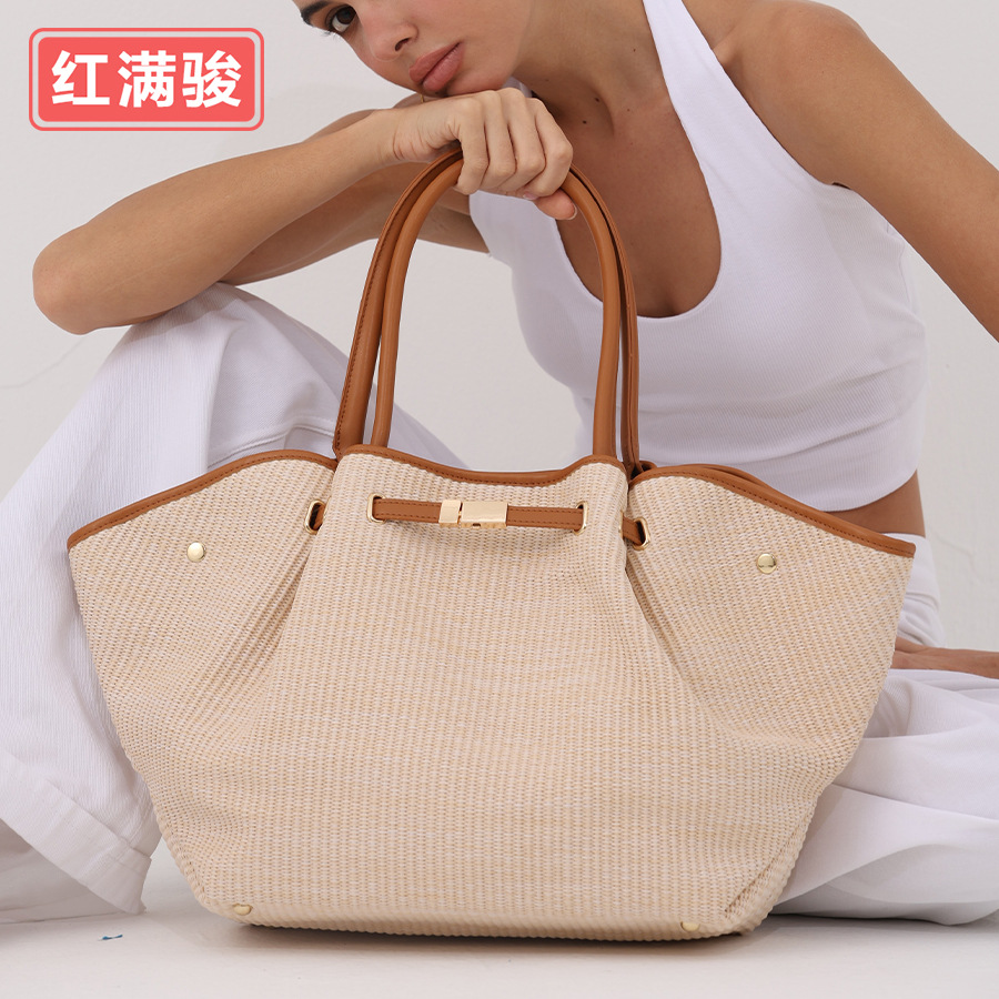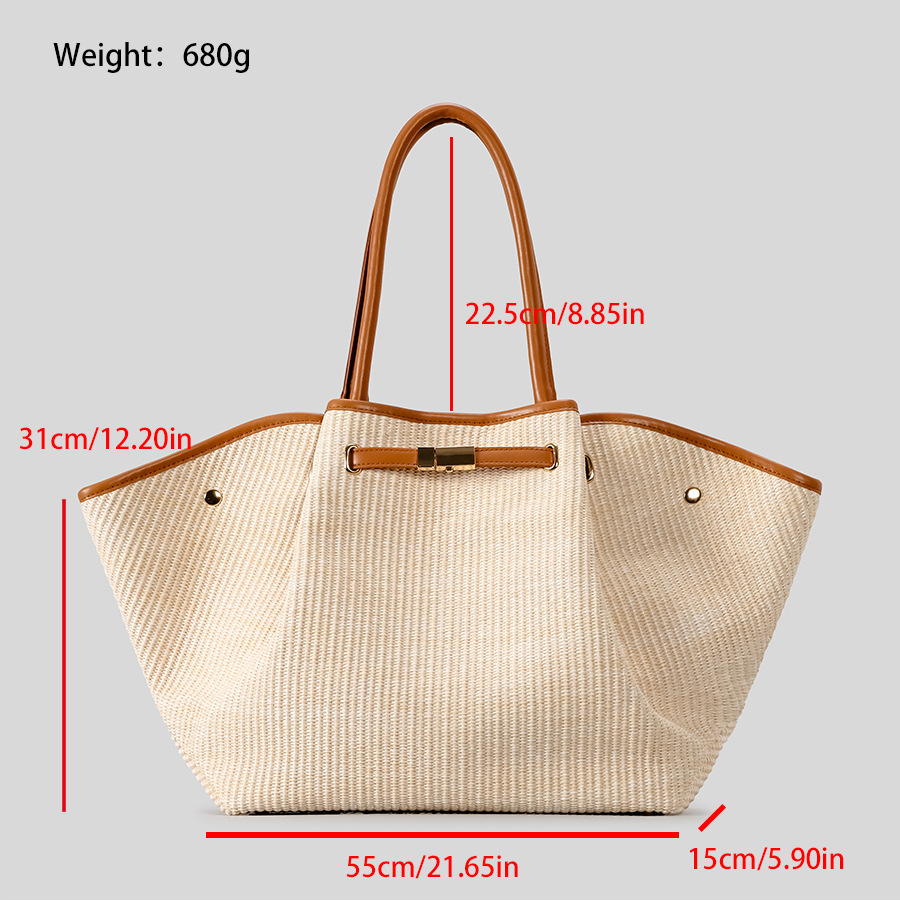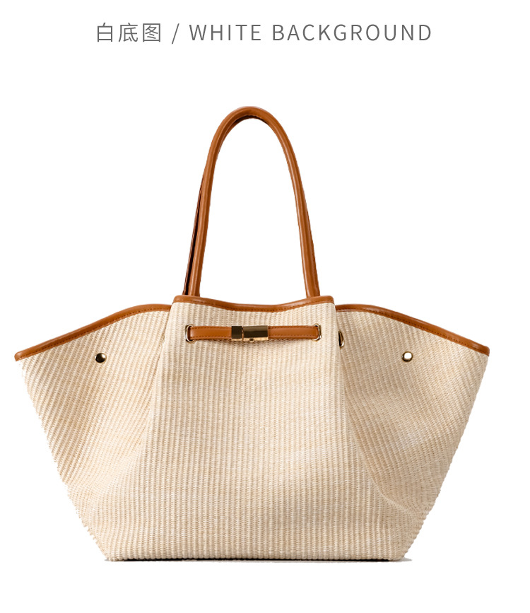 유럽과 미국의 패션 윙스 만두 가방 휴대용 대용량 토트 백 통근 여성용 다용도 손으로 짠 밀짚 가방