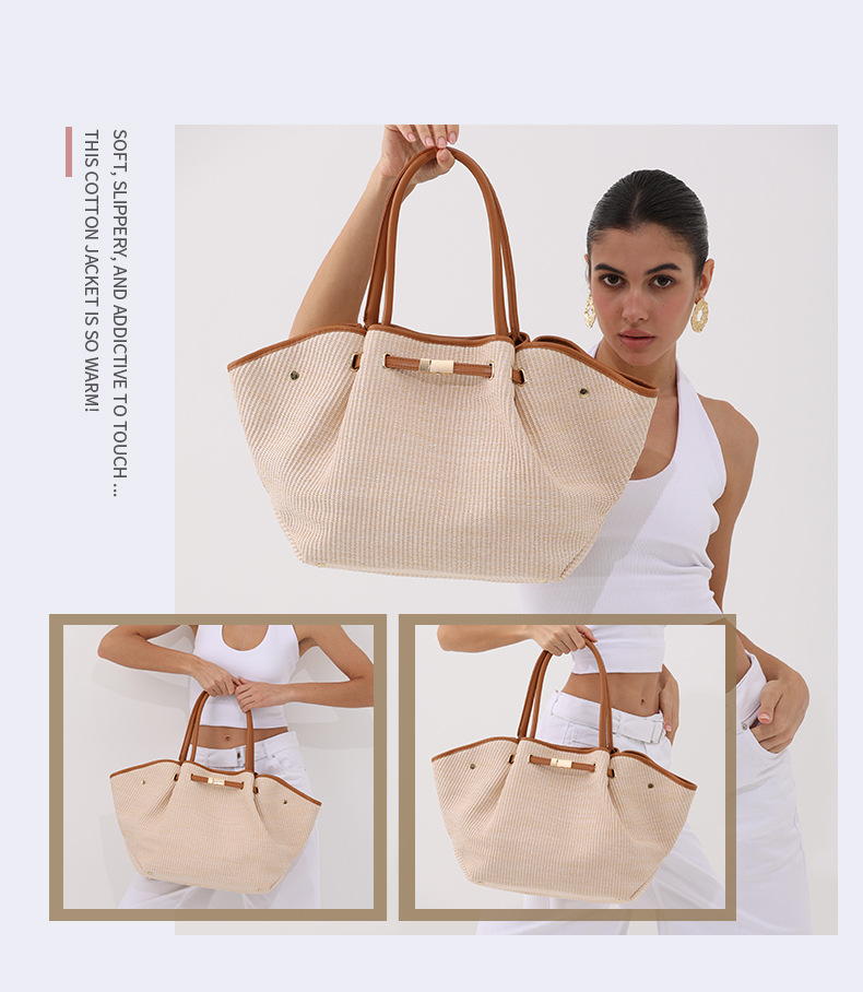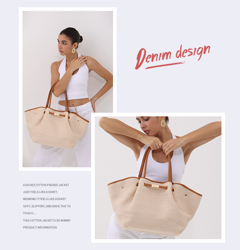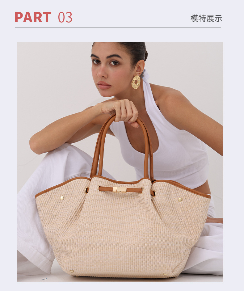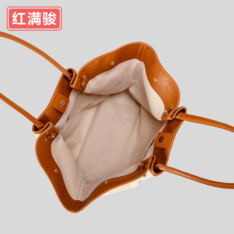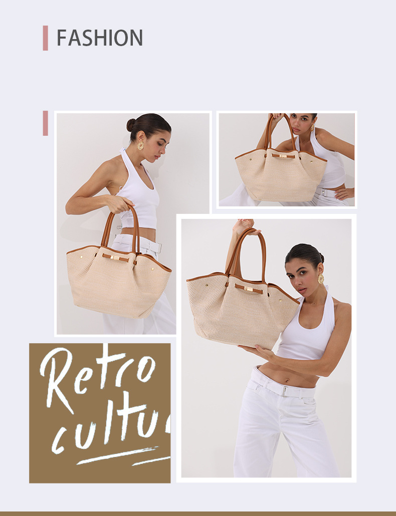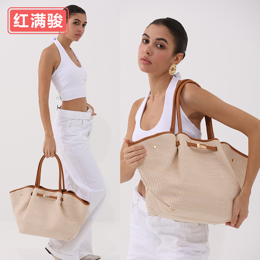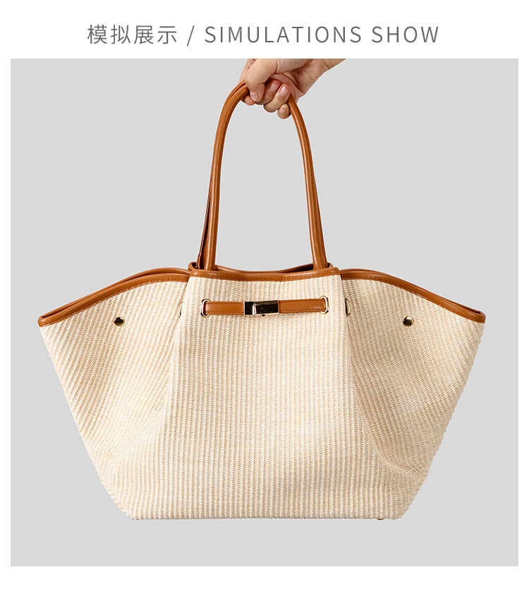 유럽과 미국의 패션 윙스 만두 가방 휴대용 대용량 토트 백 통근 여성용 다용도 손으로 짠 밀짚 가방