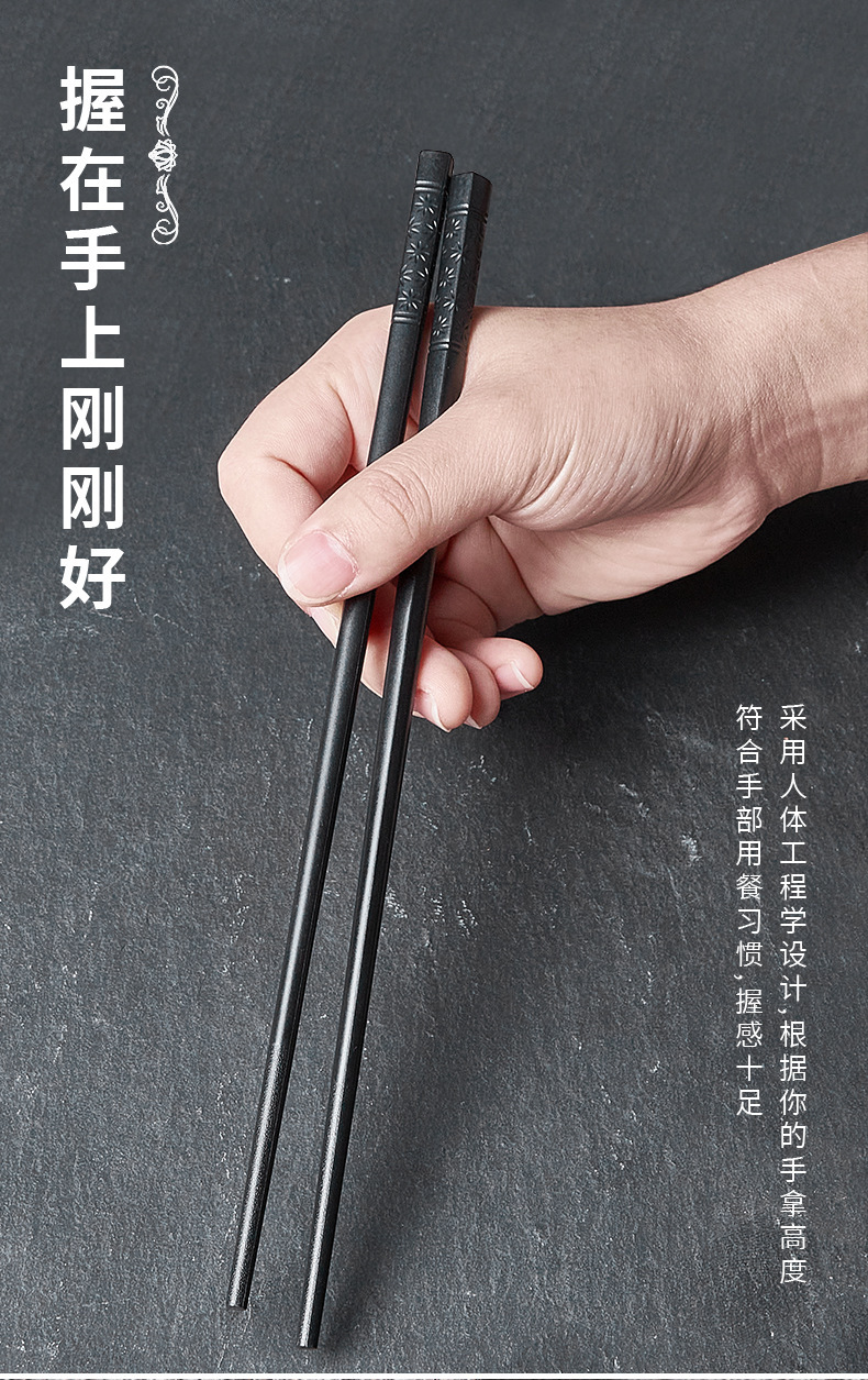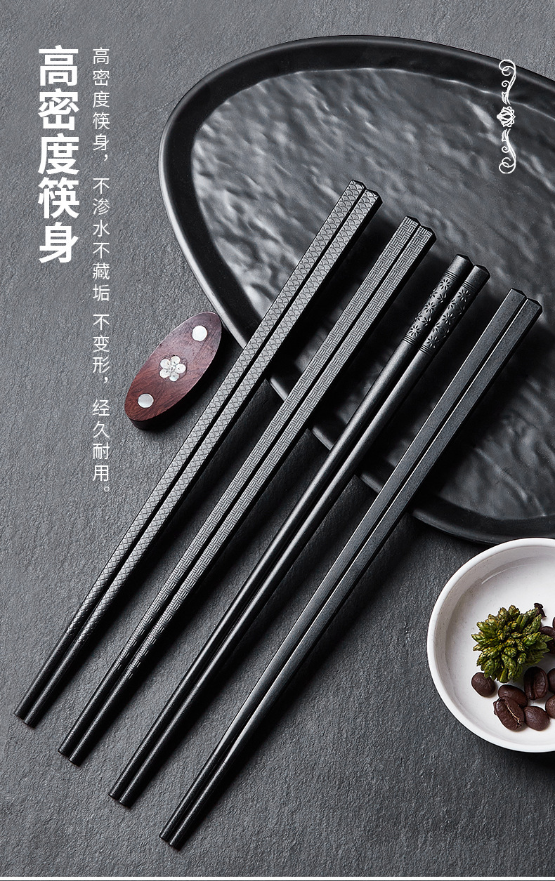 검은 젓가락 합금 식품 등급 젓가락 홀더 상업용 케이터링 젓가락 곰팡이 방지 호텔 멜라민 젓가락 미끄럼 방지 도매