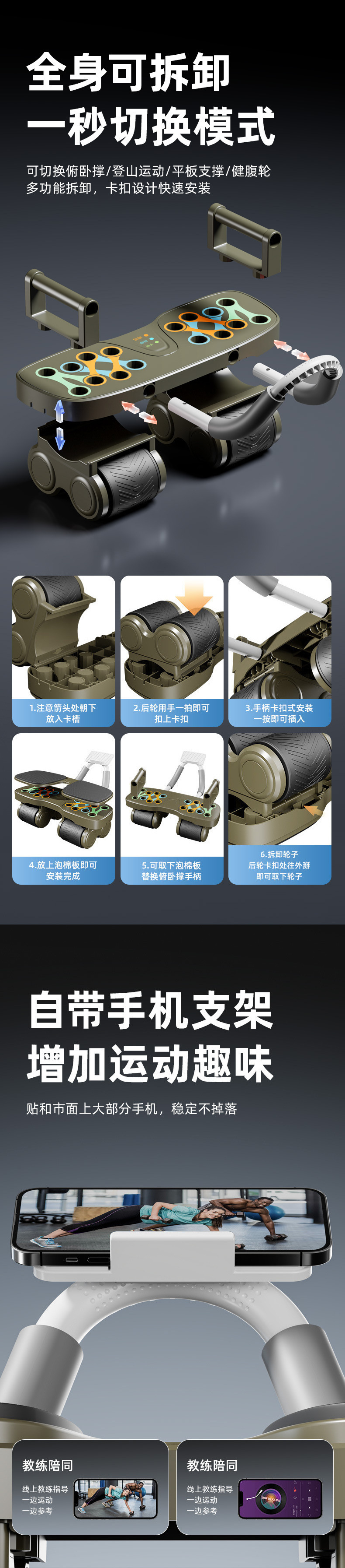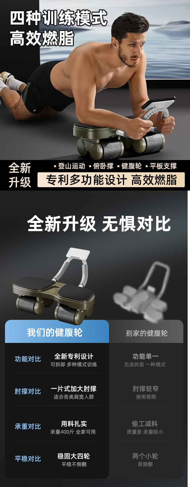 2025 최신 자동 리바운드 복부 휠 체중 감량 유물 남성과 여성을 위한 푸시업 플랫 서포트 홈 피트니스 유물
