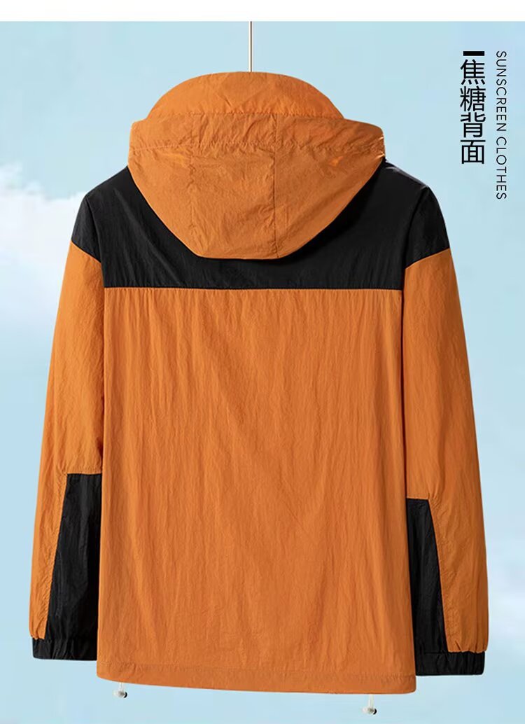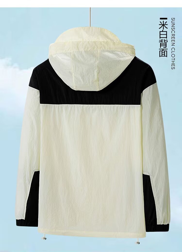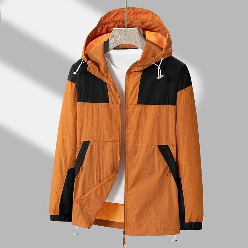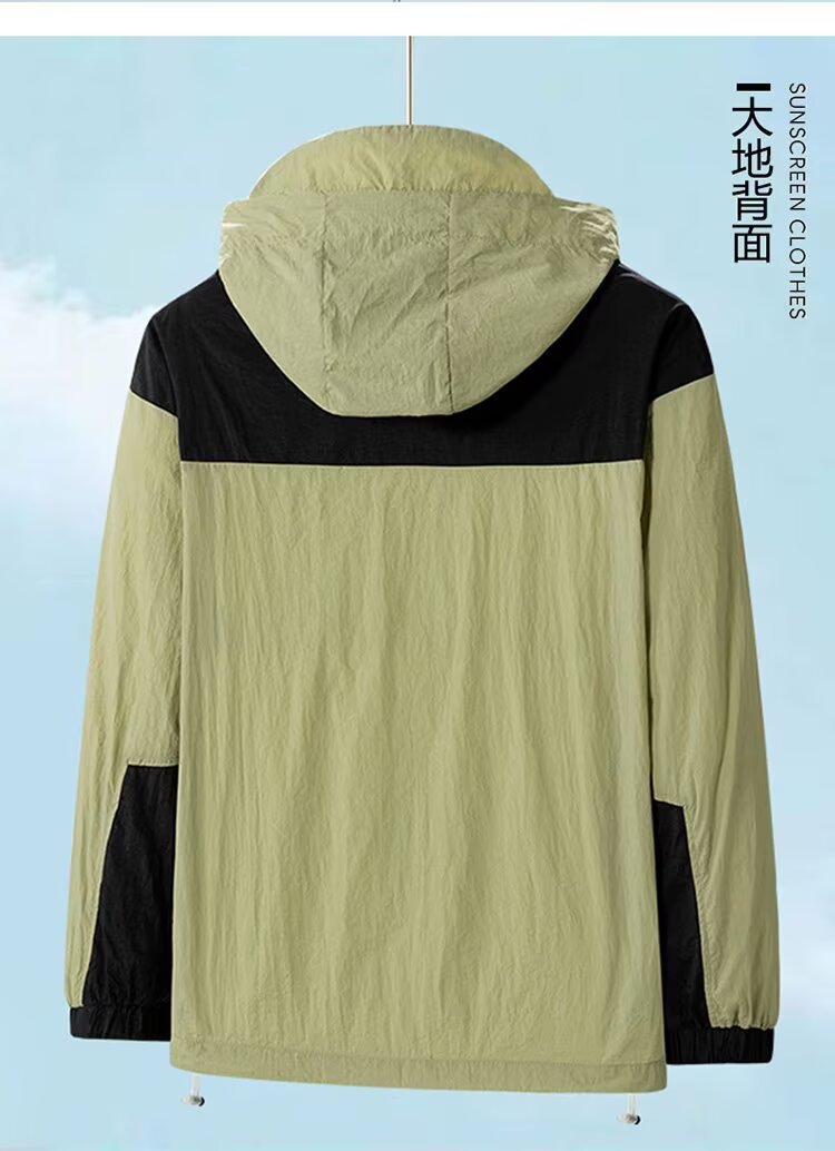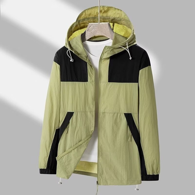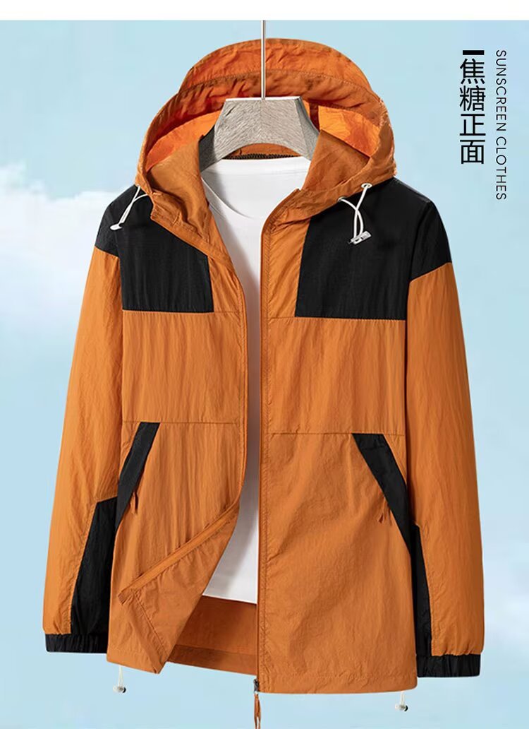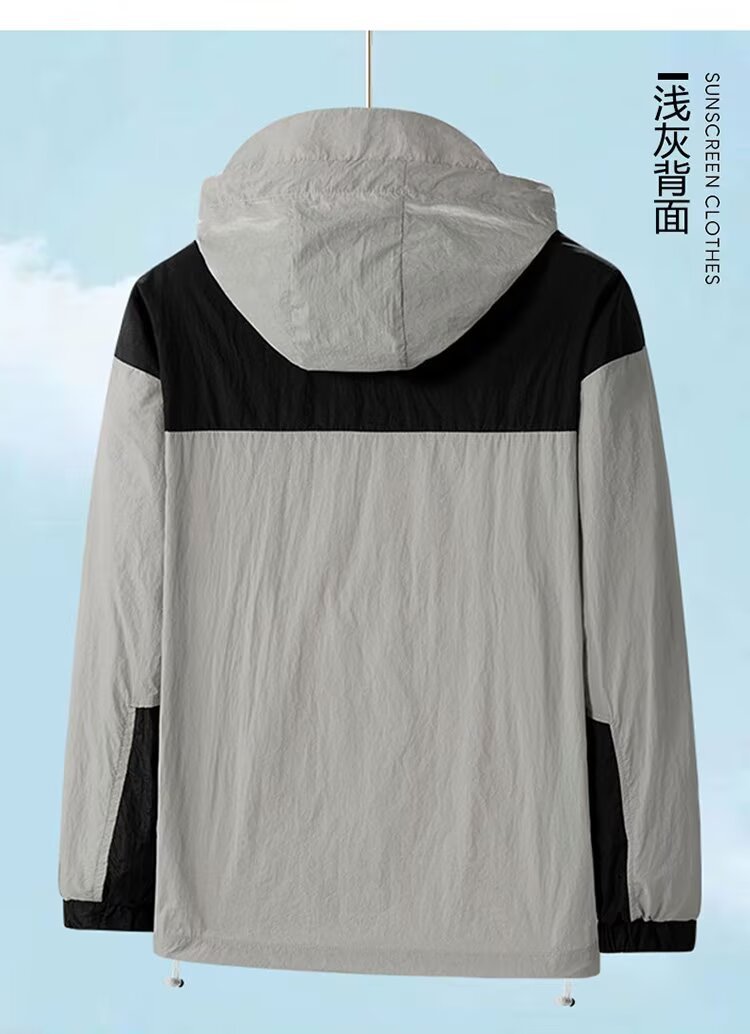 봄과 가을 새로운 남성 야외 유행 브랜드 지퍼 자켓 후드 작업복 윈드 브레이커 자켓 컬러 매칭 캐주얼 자외선 차단 의류