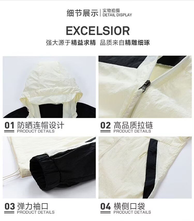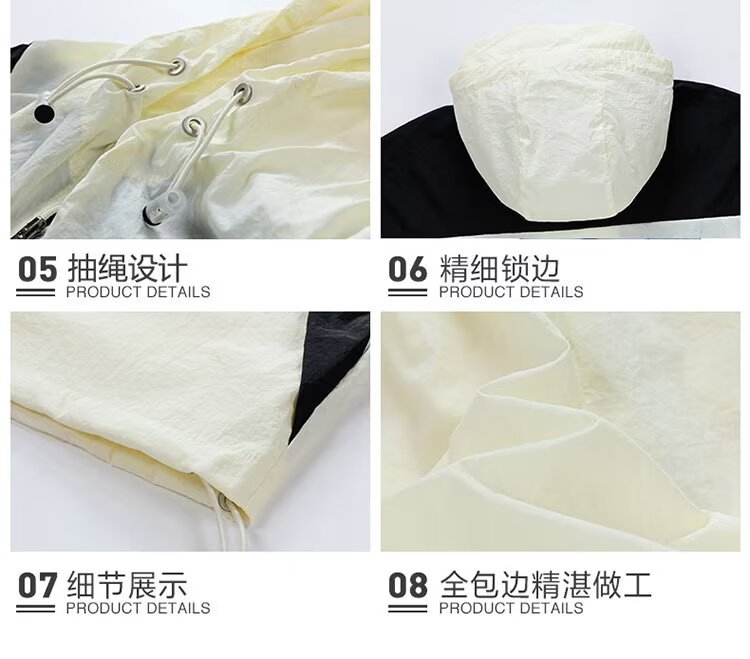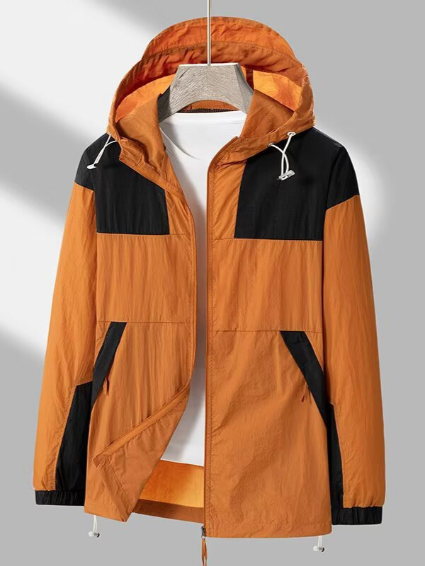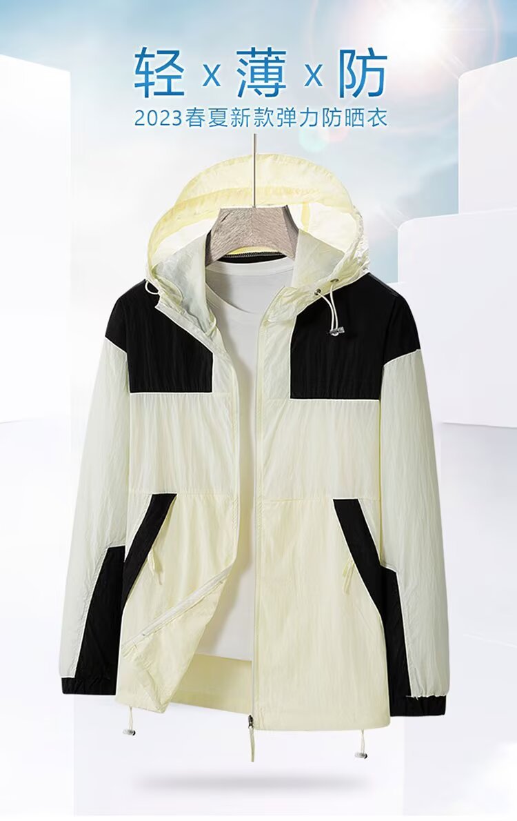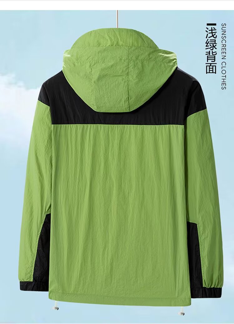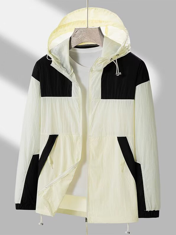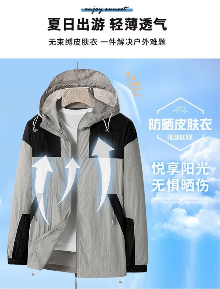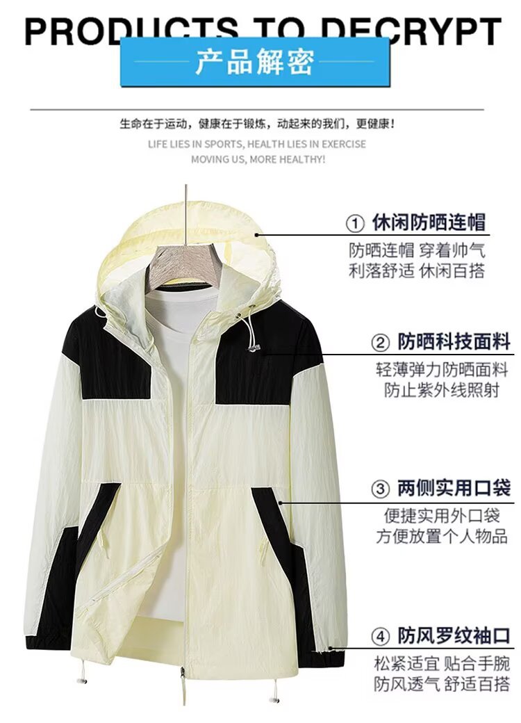 봄과 가을 새로운 남성 야외 유행 브랜드 지퍼 자켓 후드 작업복 윈드 브레이커 자켓 컬러 매칭 캐주얼 자외선 차단 의류