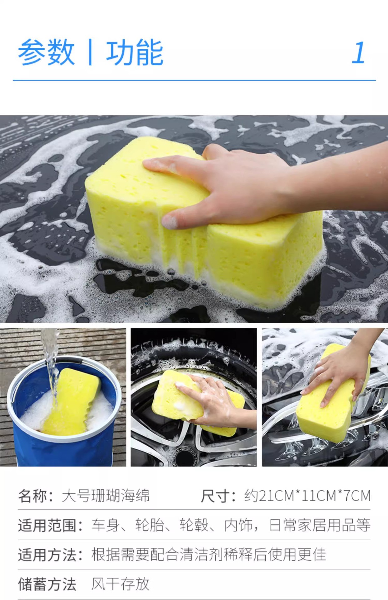 세차용 특수 스펀지, 특대형 강력한 오염제거 및 자동차 물흡수 스펀지 블록, 고밀도 면 자동차 브러싱 도구