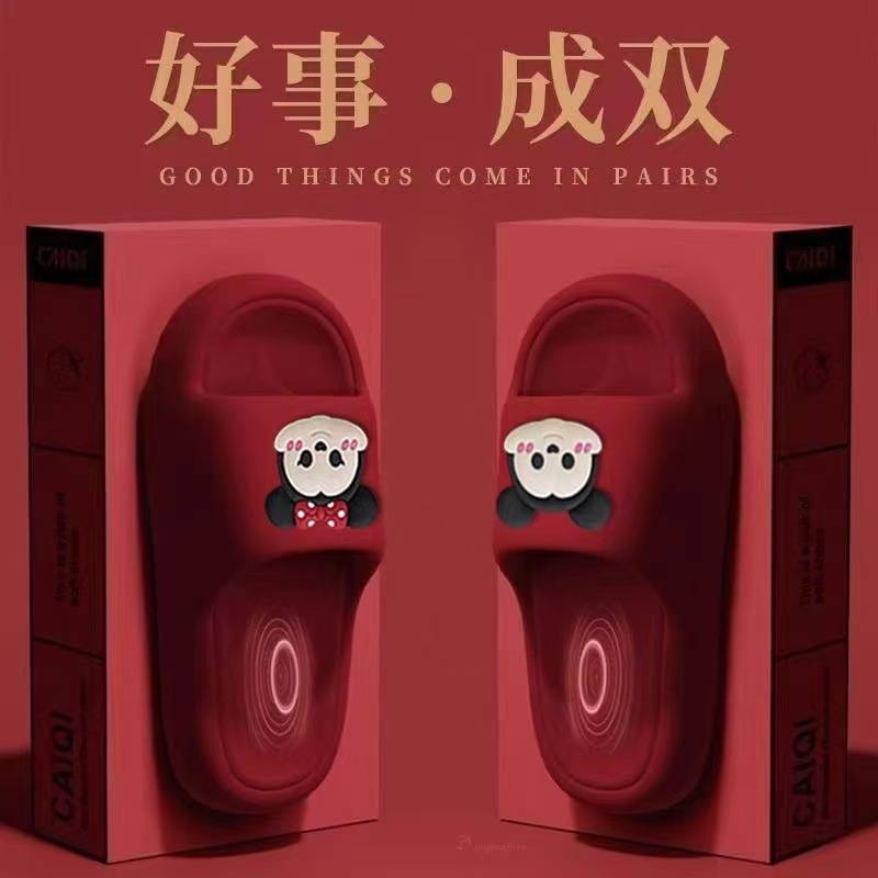 여름 아우터용 여성용 레드 축제 고급 두꺼운 밑창 에바 웨딩 샌들, 가벼운 인 결혼식 실내 슬리퍼