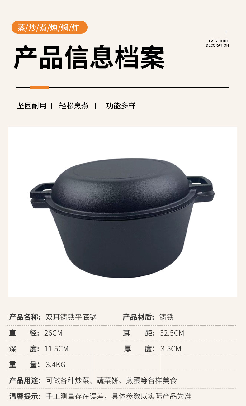 주철냄비 26cm 양이두용냄비 프라이팬 스튜냄비 두꺼운 무코팅 더치냄비 양이두 스튜냄비 양이두 프라이팬