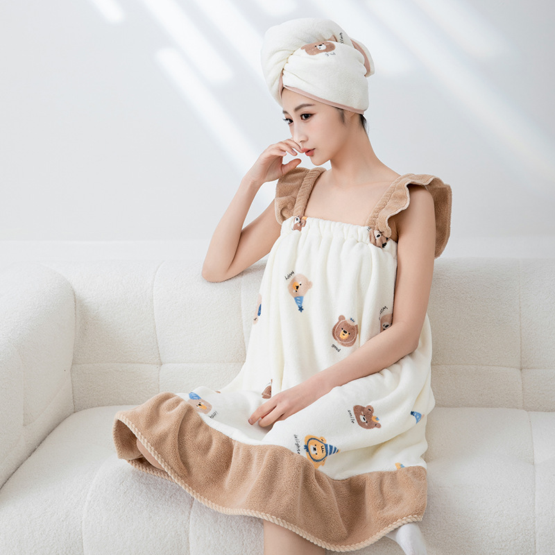 코끼리 목욕 타월 여성 가정 성인 목욕 가운 2025 새로운 스타일 목욕 스커트 비 순수 면화 흡수성 타월 3 피스 세트